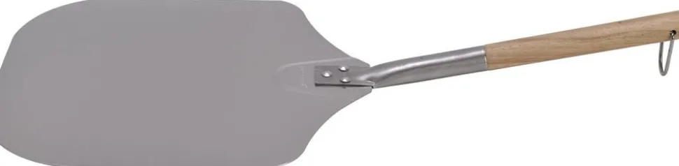 Pizzaspade i aluminium/ek för att enklare hantera gräddningen av pizzorna.
