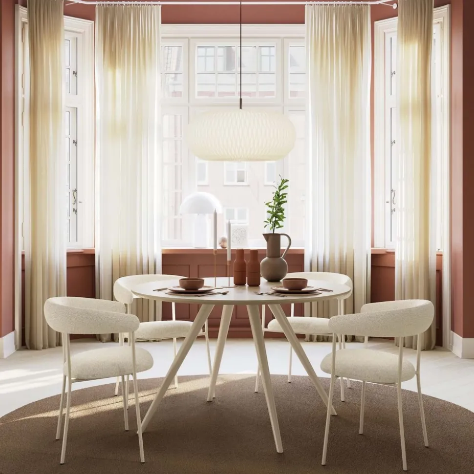 - Material: Bouclétyg/metall/stål