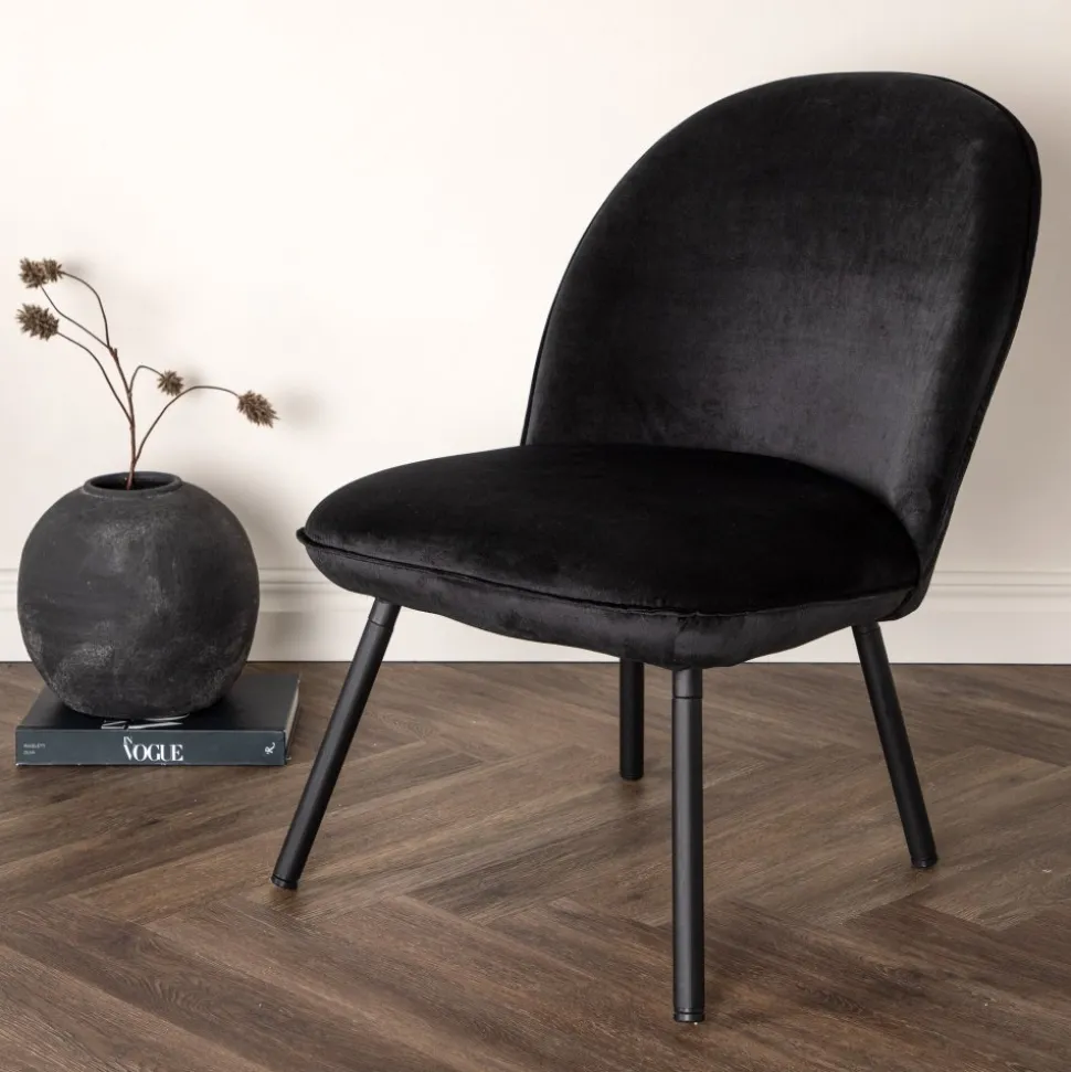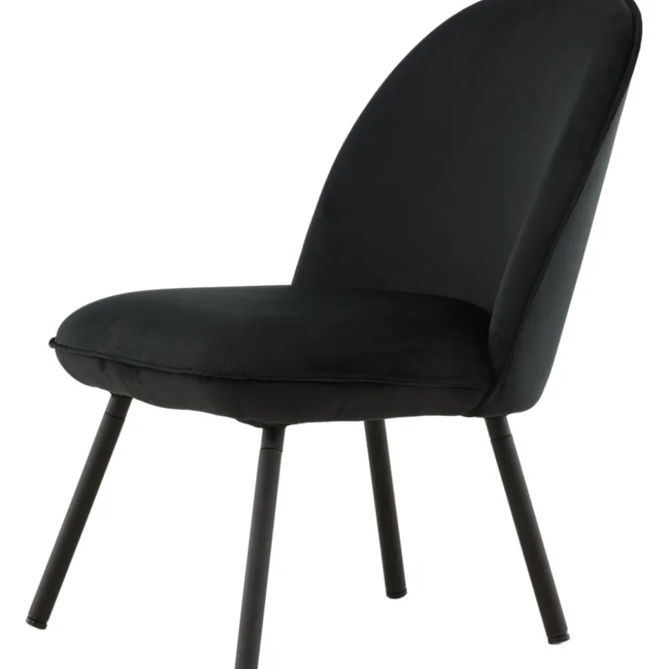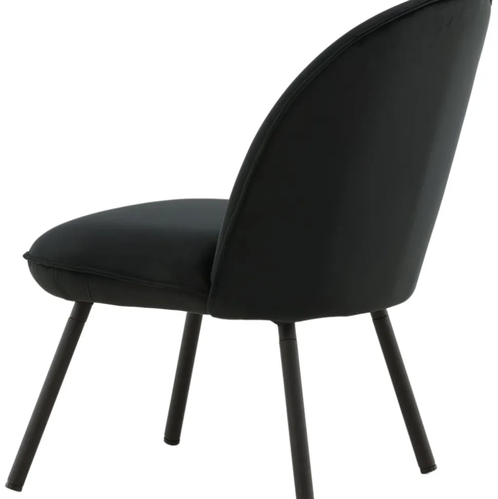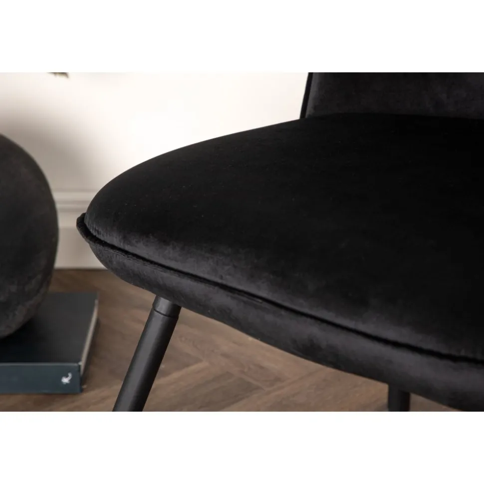 Den här stilsäkra fåtöljen har en genomgående svart kulör med en mjuk sits i sammetstyg och utsvängda ben i svart metall. Den skandinaviska designen är genomtänkt med en rundad utformning och bra balans mellan stil och komfort. Möblera intill soffgruppen eller solitär i läshörnan! Levereras omonterad.