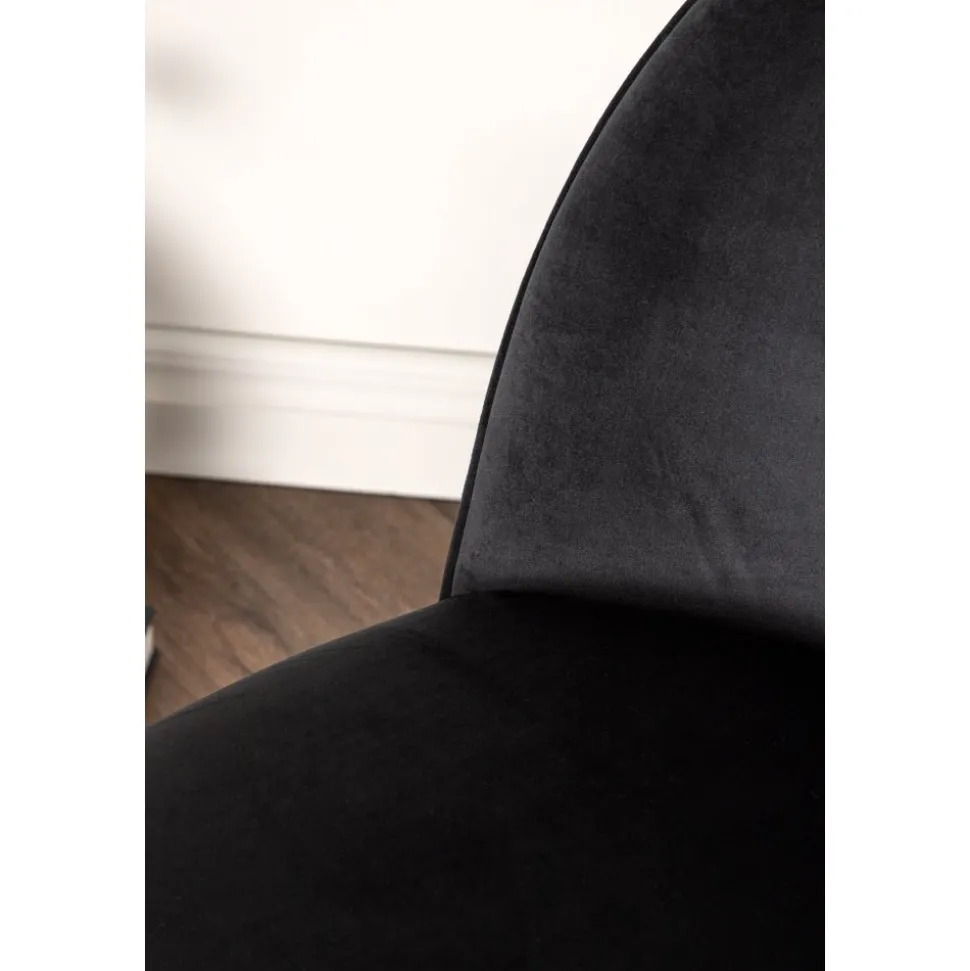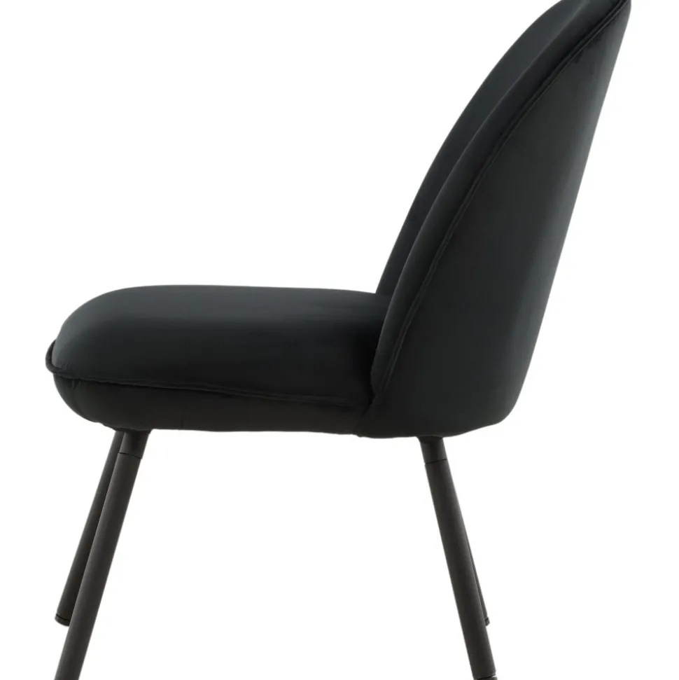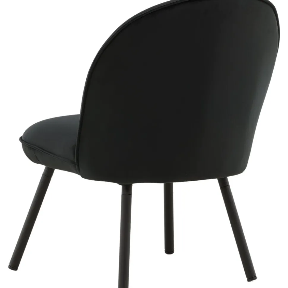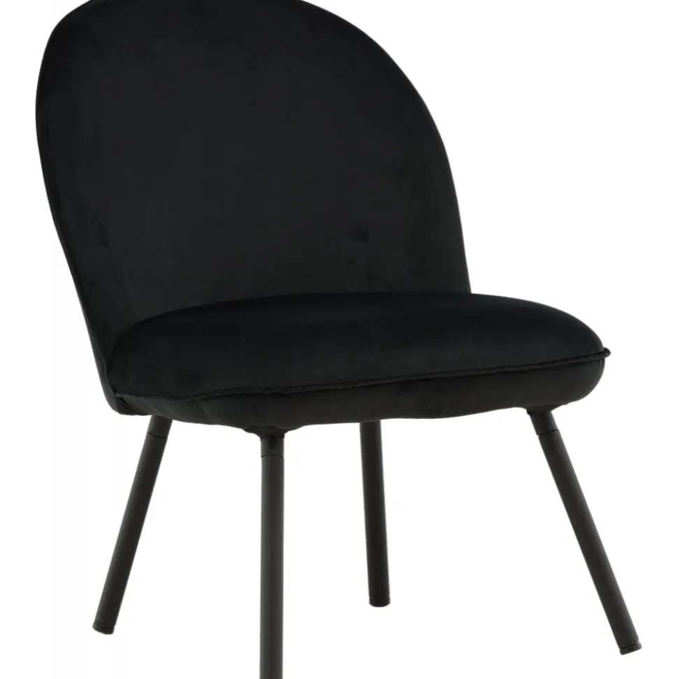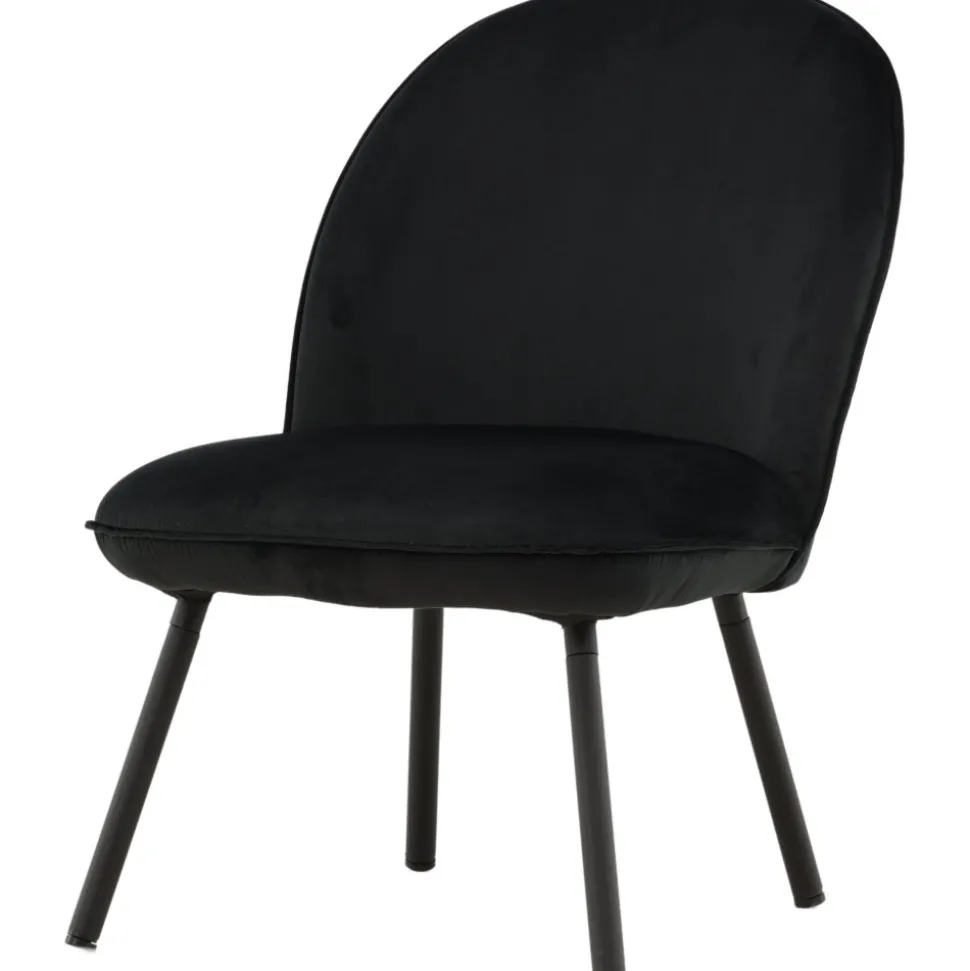 Den här stilsäkra fåtöljen har en genomgående svart kulör med en mjuk sits i sammetstyg och utsvängda ben i svart metall. Den skandinaviska designen är genomtänkt med en rundad utformning och bra balans mellan stil och komfort. Möblera intill soffgruppen eller solitär i läshörnan! Levereras omonterad.