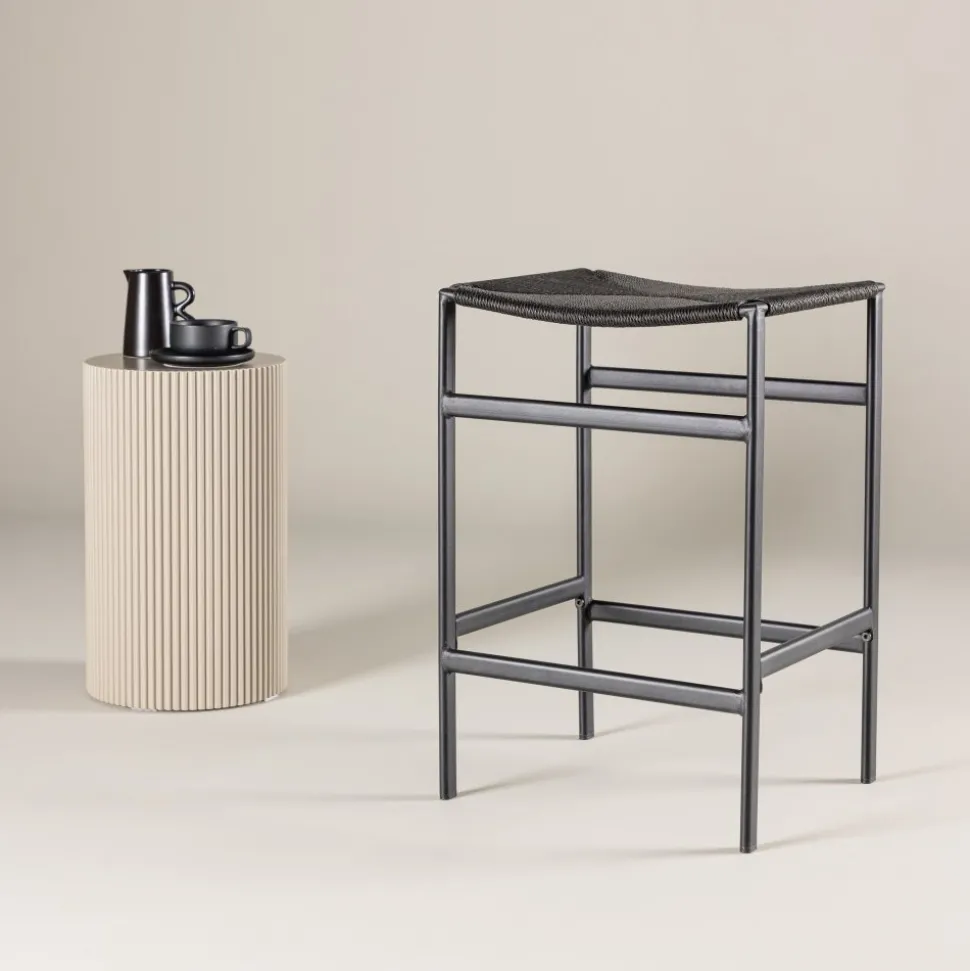 Upptäck denna moderna och eleganta barstolen. Med sin djupa svarta färg och robusta stålunderredee är denna en perfekt kombination av stil och funktion. Stolen är tillverkad av repmaterial, vilket ger en unik och modern touch samtidigt som den är bekväm att sitta i. Stålet ger stabilitet, vilket gör den lämplig för användning i både hemmets barområde och kommersiella miljöer. Den stilrena designen och den djupa svarta färgen gör barstolen till ett mångsidigt tillägg till alla typer av inredning och rum. Oavsett om det är för att avnjuta en drink vid bardisken eller för att skapa en modern atmosfär i ditt hem eller affärslokal, kommer barstolen att bli ett uppskattat tillskott till din inredning. Ge din bar eller köksö en modern touch med denna eleganta barstol.