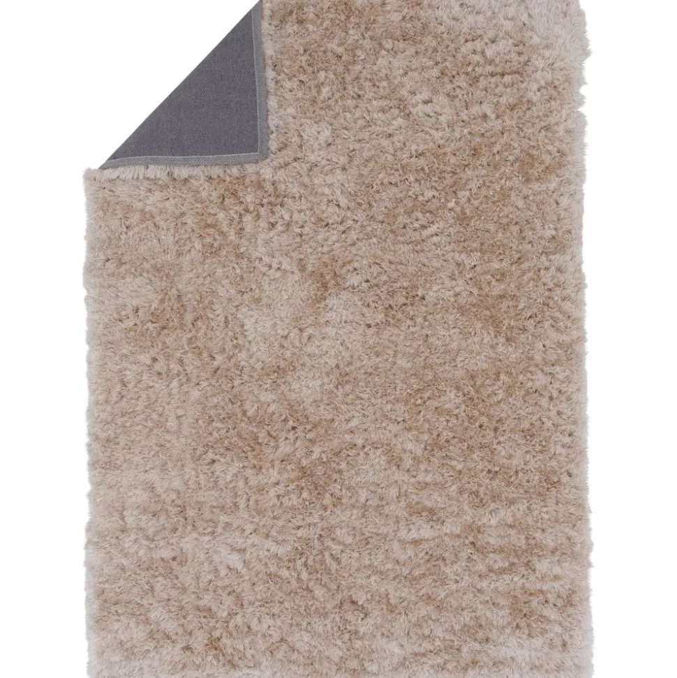 Fluffig champagnefärgad polyestermatta med silkeslen känsla. Slätvävd med hög och tät lugg.