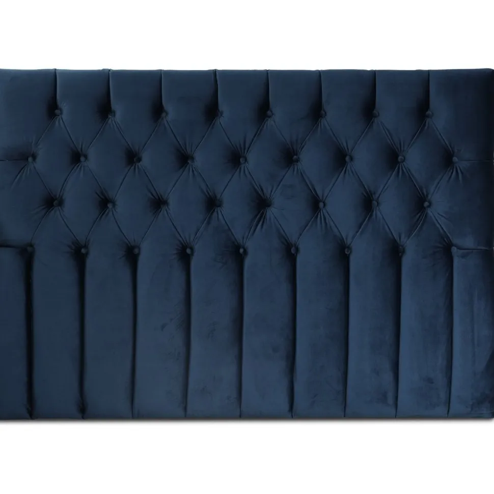 Sänggavel Presley i ett mörkblått sammetstyg med en mjuk känsla. Snygg design med djuphäftade knappar för att ge ett lyxigt utryck i sovrummet.