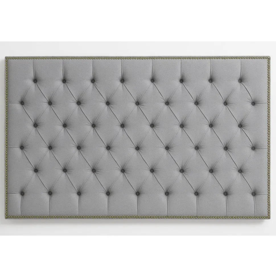 Ge ditt sovrum en exklusiv touch med Princess sänggavel. De mässingsfärgade nitarna ramar in den vackert pikerade designen och skapar en känsla av klass och elegans. Gaveln är golvstående och klädd i ett mjukt, ljusgrått tyg (Orinoco 21) som harmoniserar med de flesta inredningsstilar.
