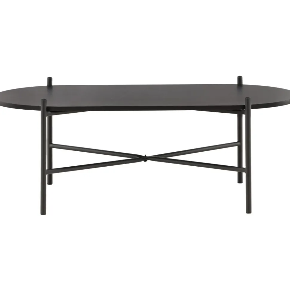 Soffbord med en iögonfallande, skandinavisk design och en generös storlek som gör att det passar perfekt framför den större soffan. Bordet har en oval toppskiva i svart MDF och en minimalistisk stomme i svart stål. Bordsskivan erbjuder gott om plats för både dekorationer och det luftiga underredet bidrar till en stilren atmosfär i rummet. Placera på den mysiga mattan framför soffan och höj stilnivån i hemmet.