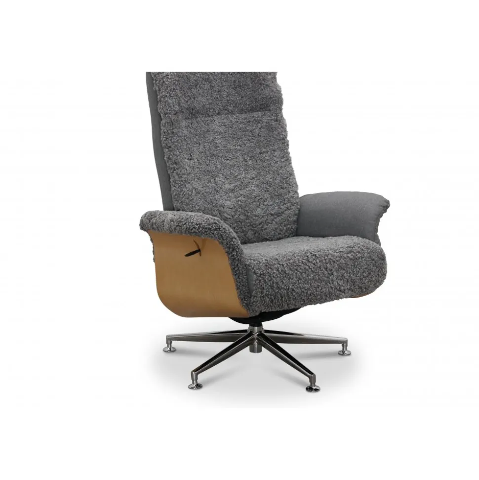 - Reclinerfåtölj med fotpall i äkta fårskinn ek/grafitgrå – Ulla
