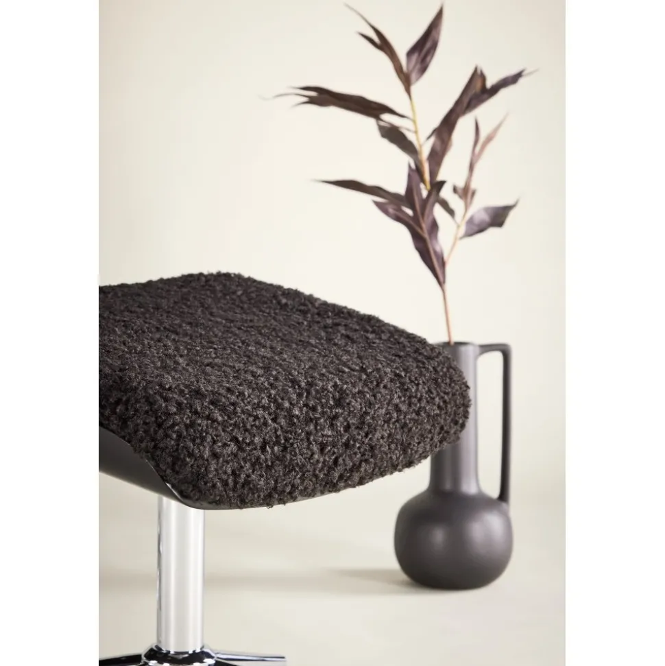 Hagön-serien erbjuder fåtöljer med fotpallar som kombinerar modern design med maximal komfort. Klädd i mjukt fårskinnsliknande teddytyg ger Hagön en inbjudande och ombonad känsla. Den här modellen kommer i elegant svart teddy med sidopaneler i svartbetsad ekfanér och ett snurrbart stativ i kromad metall detaljer som lyfter helheten och ger ett exklusivt uttryck.