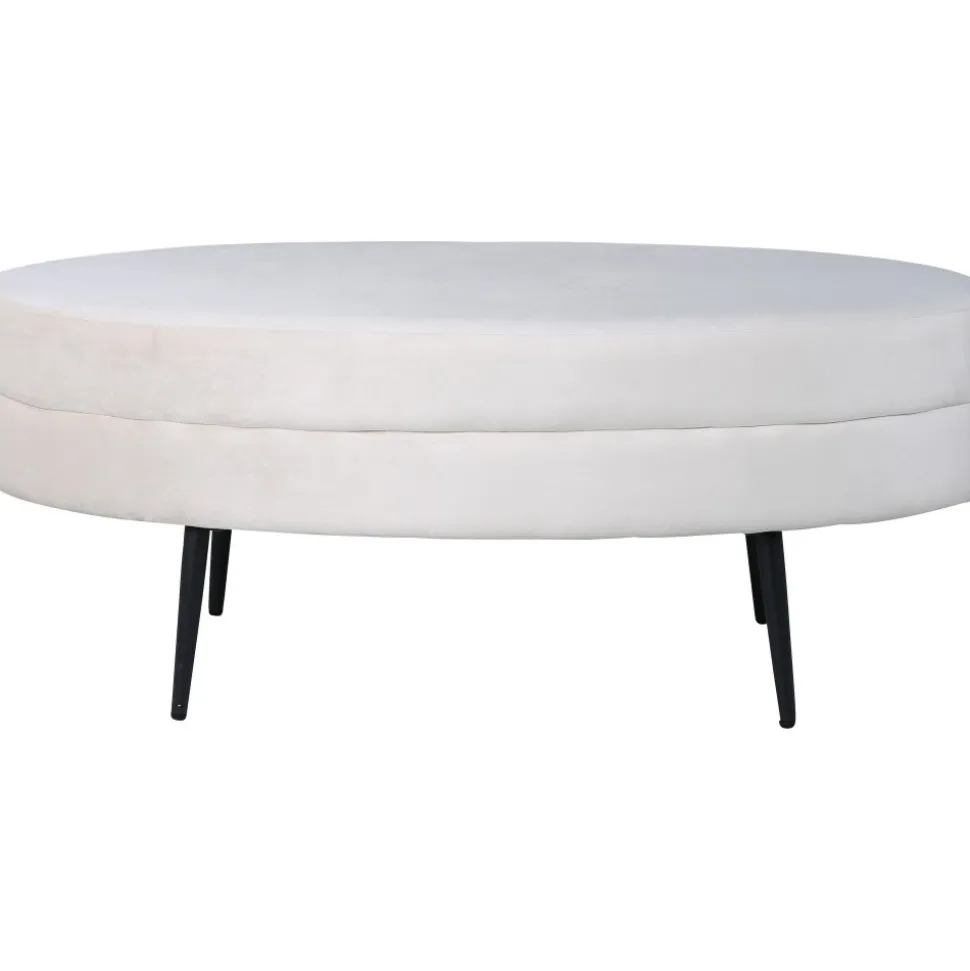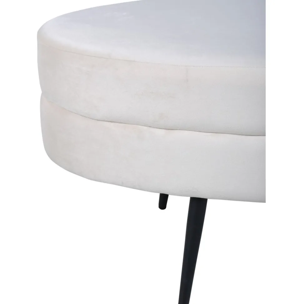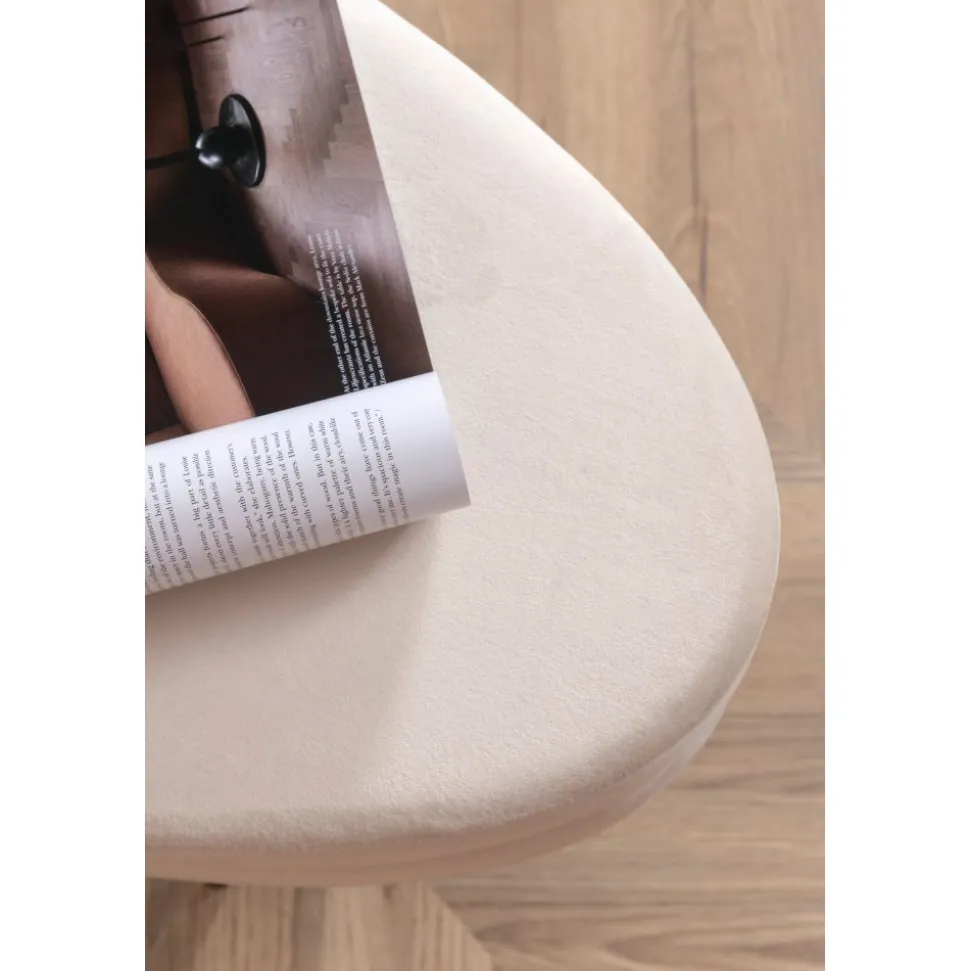 Sittpuff av trä och stål, klädd med polyestertyg.