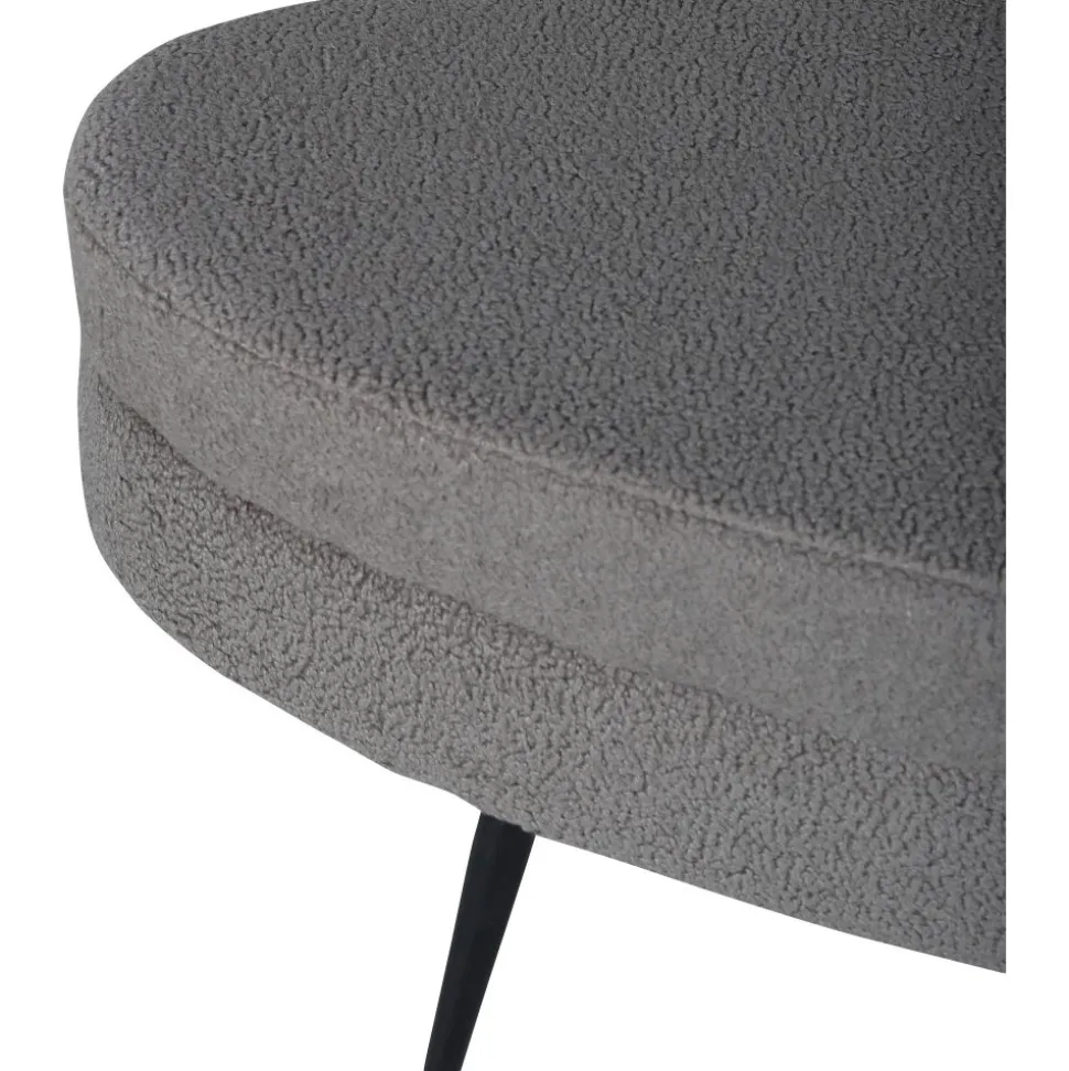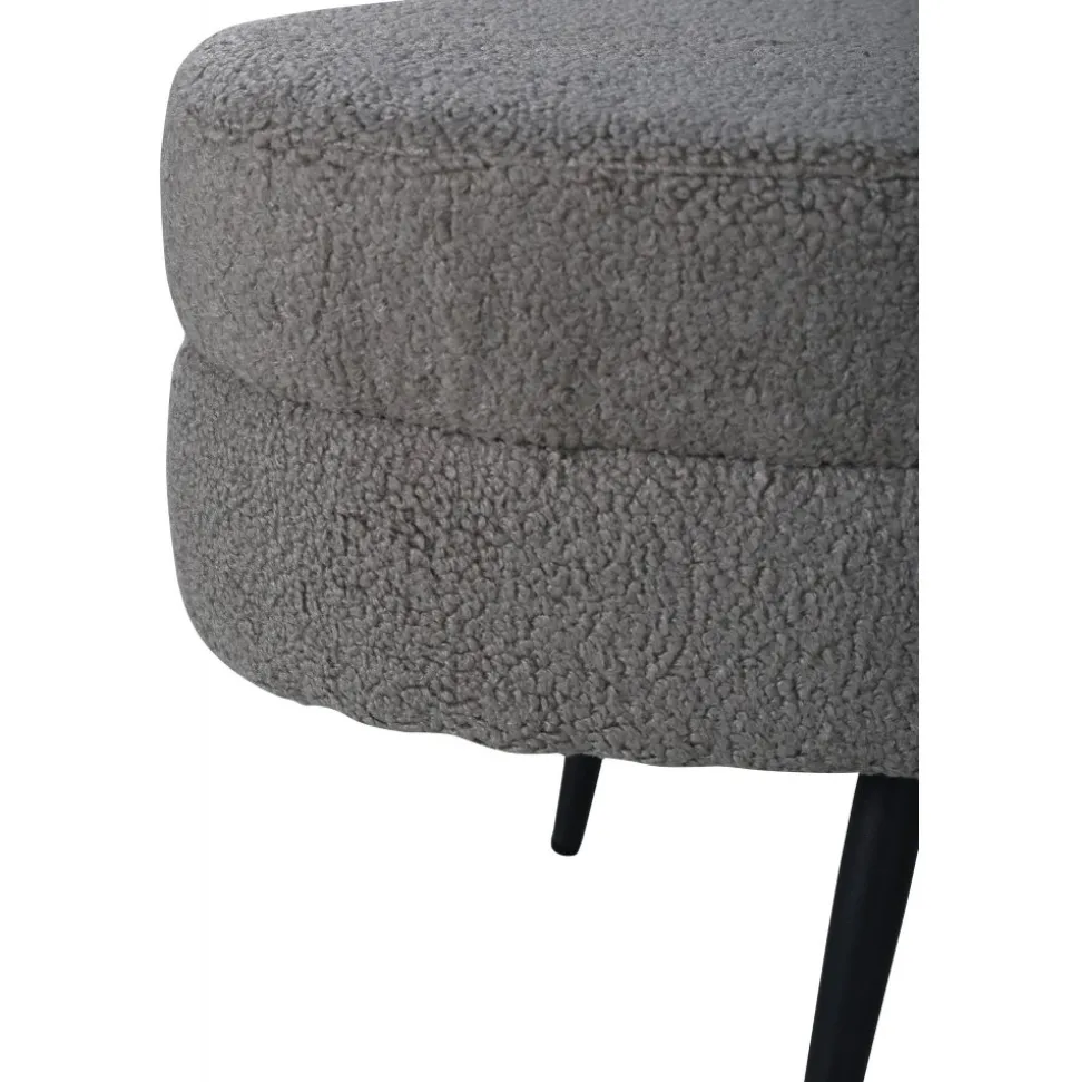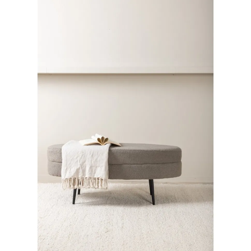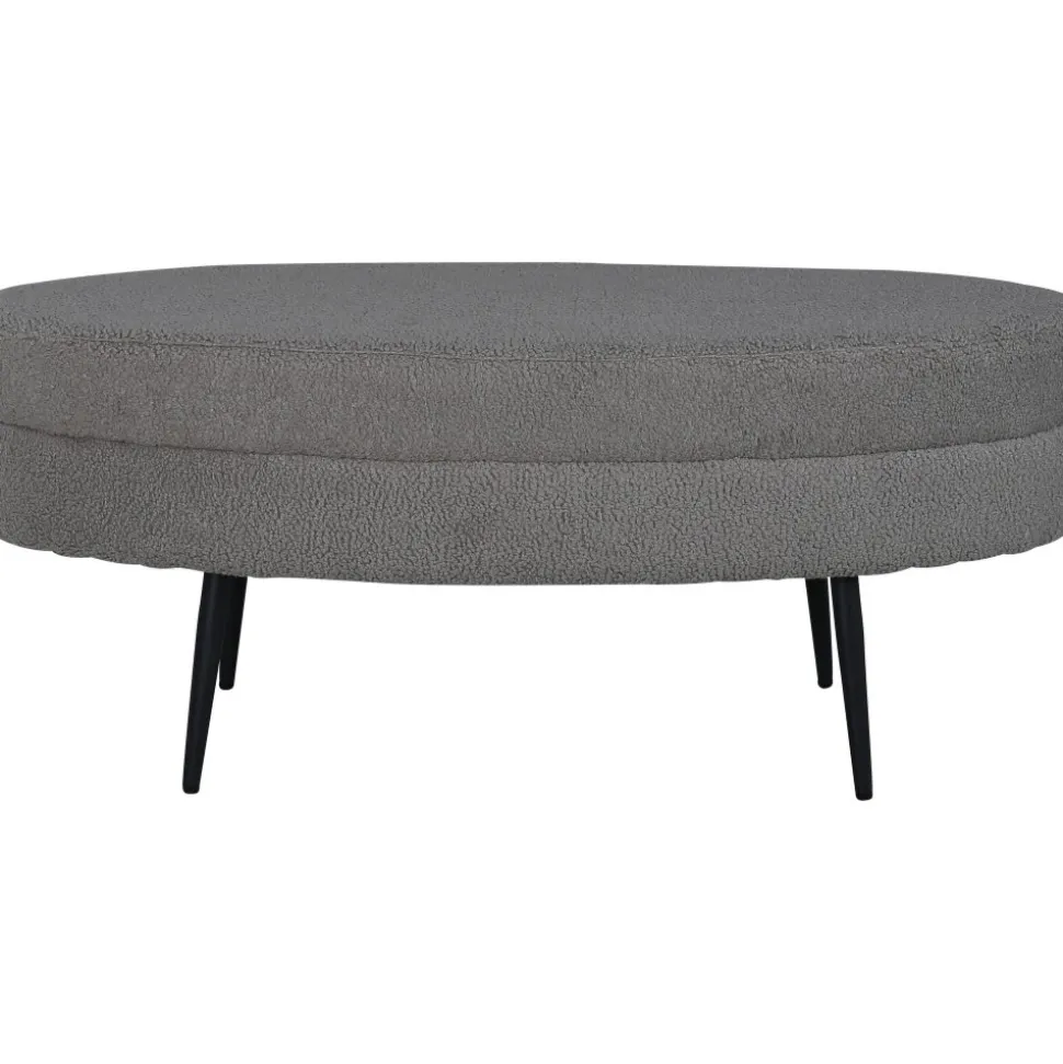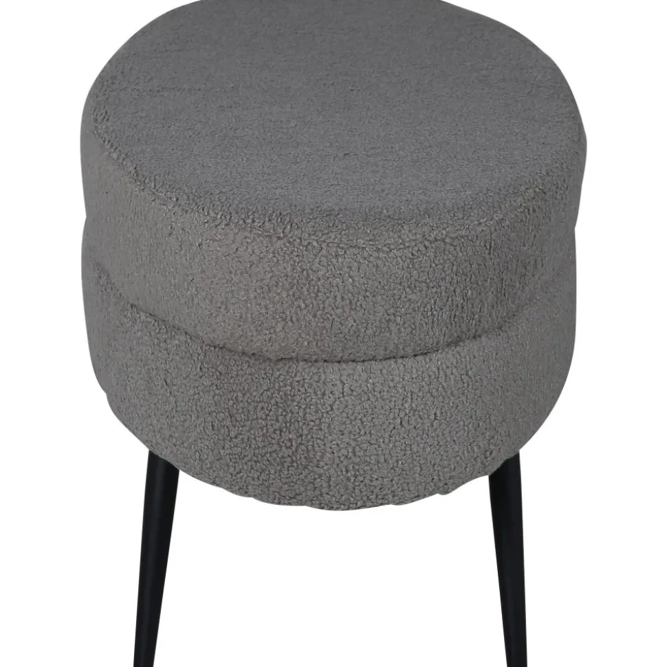 Sittpuff av trä och stål, klädd med polyestertyg.