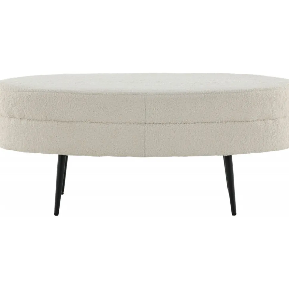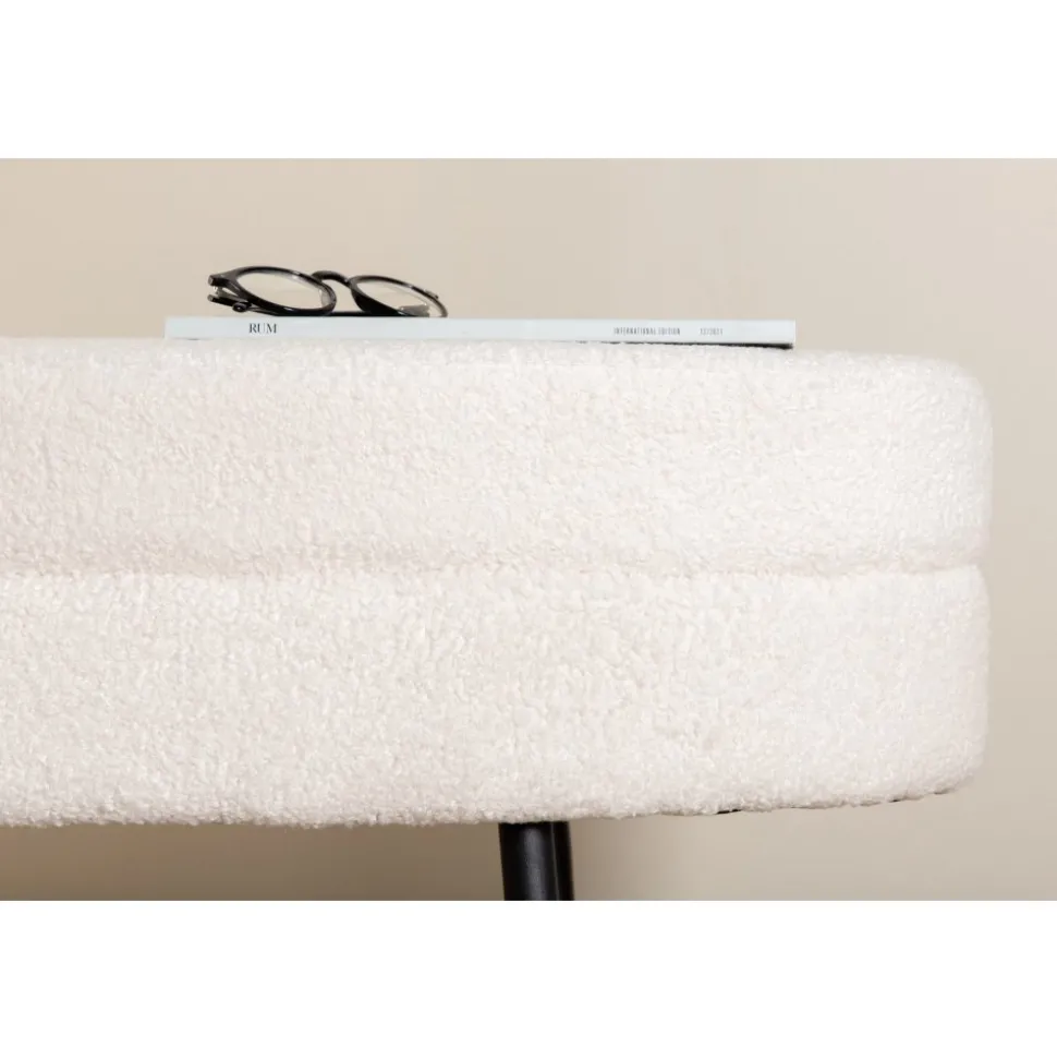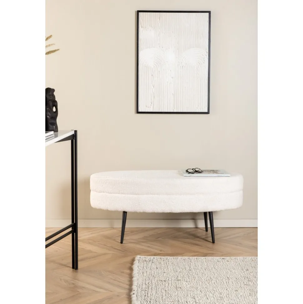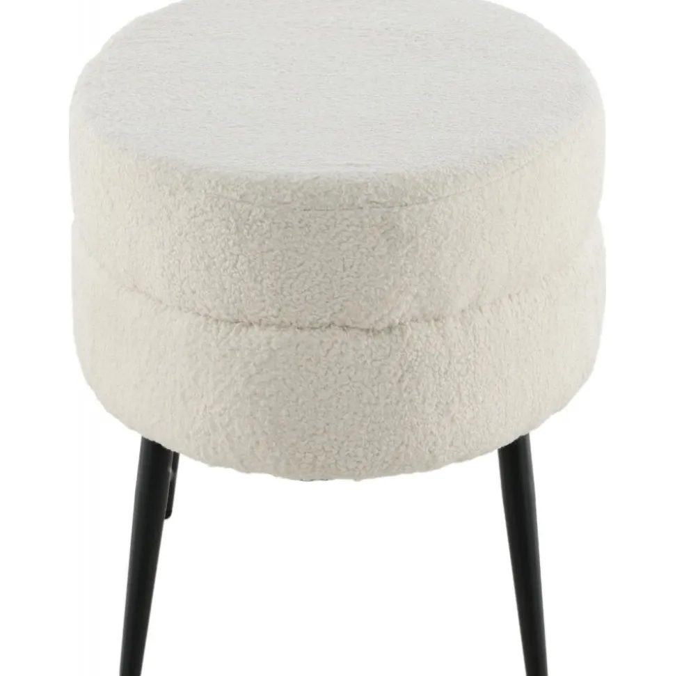 Sittpuff av trä och stål, klädd med polyestertyg.