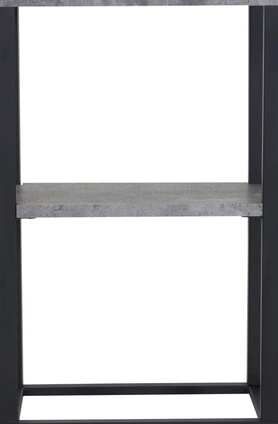 Sängbord Rise med två hyllplan i MDF med betongmönster. Stomme i svart metall. Finns även i teakimitation.
