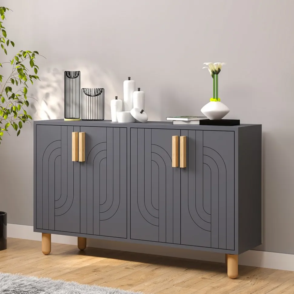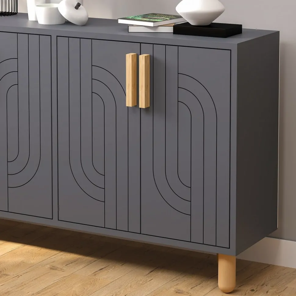 Föreställ dig att du går in i ditt vardagsrum och möts av denna vackra skänk. Dess antracitfärg ger en touch av lyx, medan dess eleganta design kompletterar alla inredningsstilar. Oavsett om du placerar den i din entré, vardagsrum eller sovrum, kommer denna skänk omedelbart att höja utseendet på ditt utrymme.