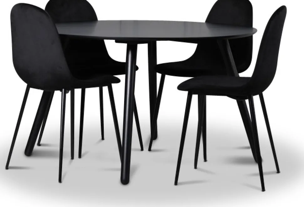 - Rosvik matgrupp, matbord med 4 st Carisma sammetsstolar – Svart/Svart