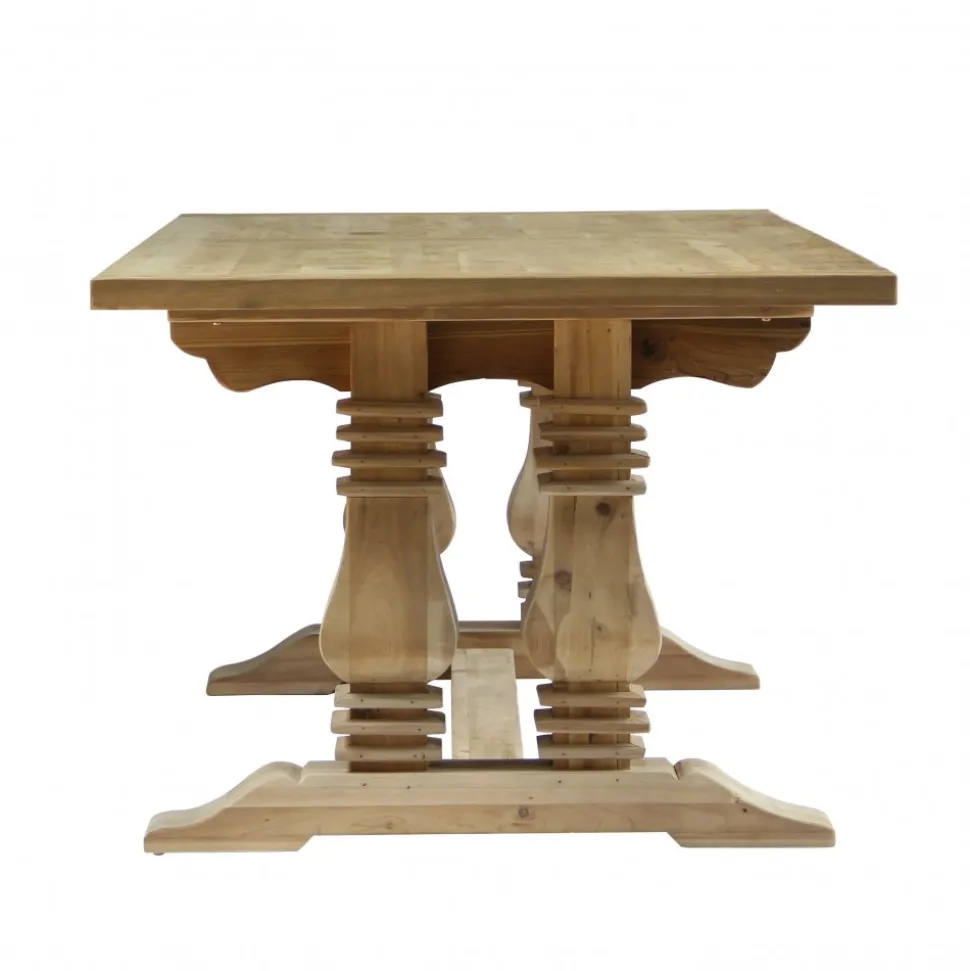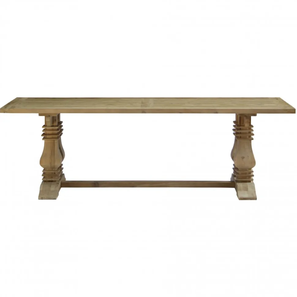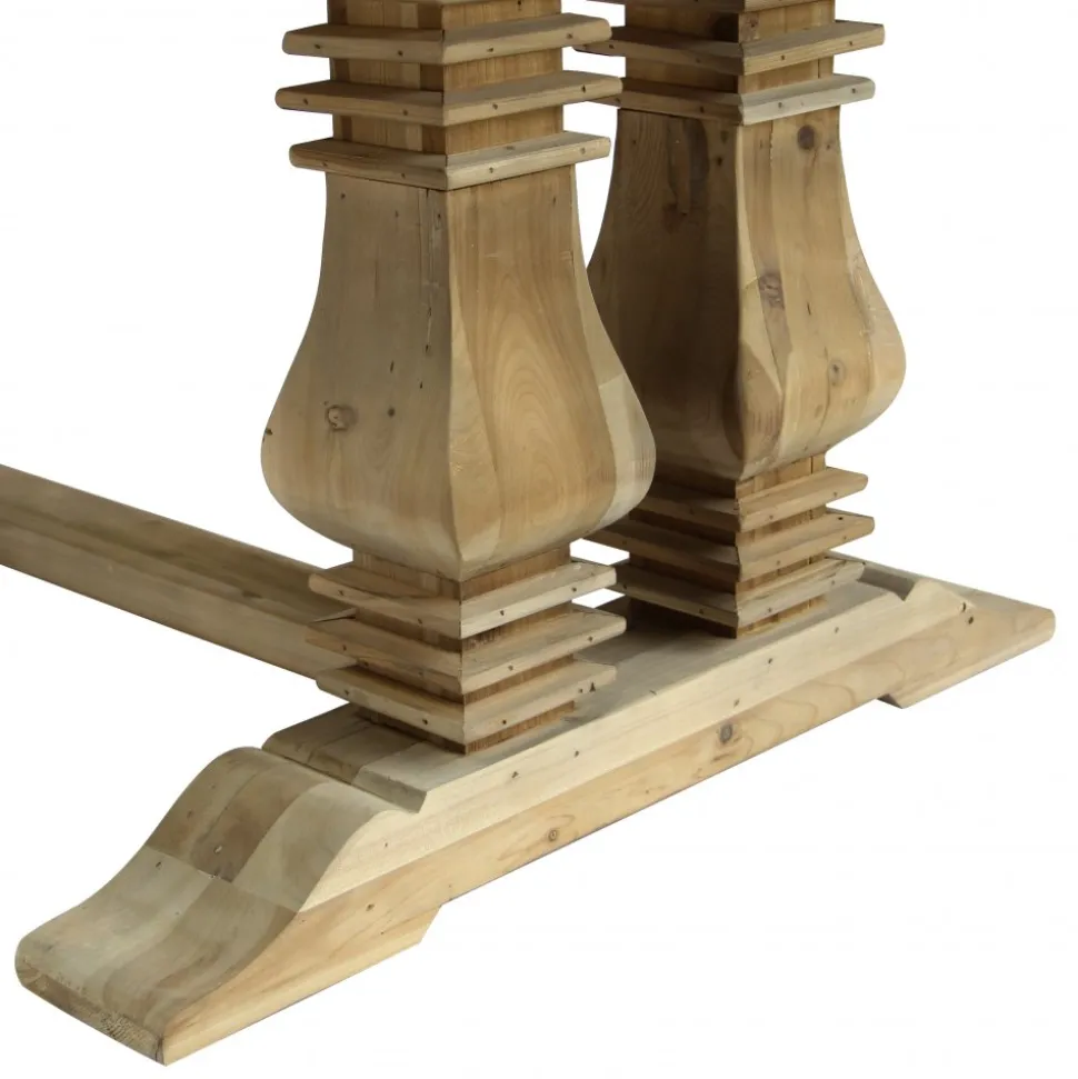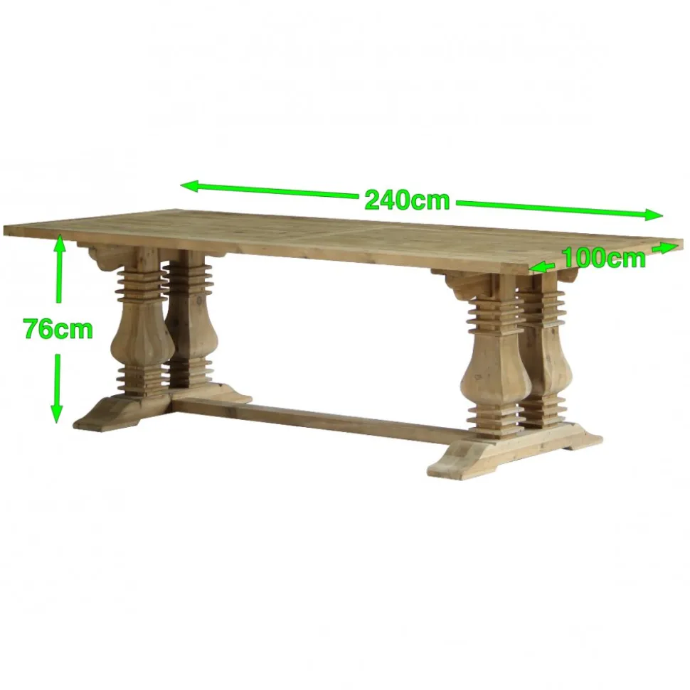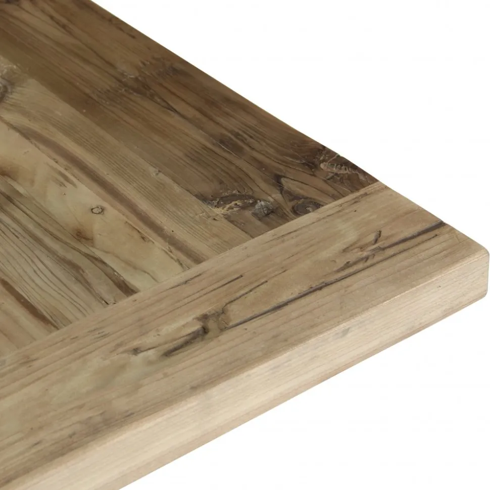 Bordet är tillverkat av återvunnen furu som har färgskiftningar, gropar, sprickor och ojämnheter för att tillsammans med ett gediget hantverk skapa möbelns katraktär och unika värde.