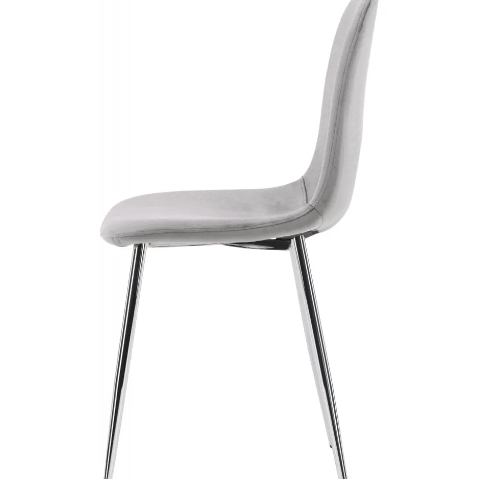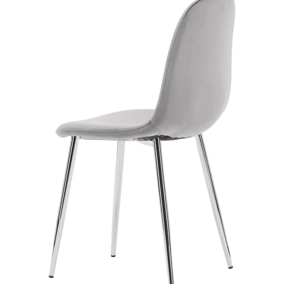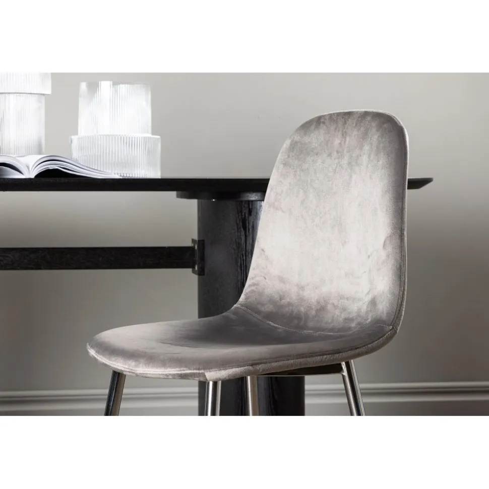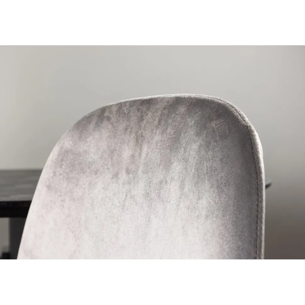 Modern drömstol i tidlös ljusgrå kulör! Den här matstolen har en helklädd design med lätt rundad rygg och sits i sammetstyg och ben i ljusgrå metall. Möblera hemmets hjärta inbjudande och trivsamt och njut av härliga måltider tillsammans!