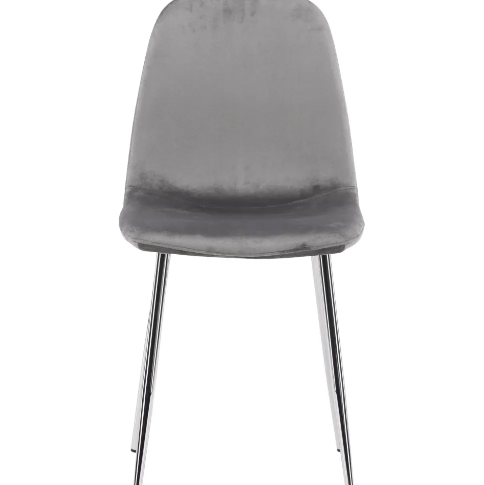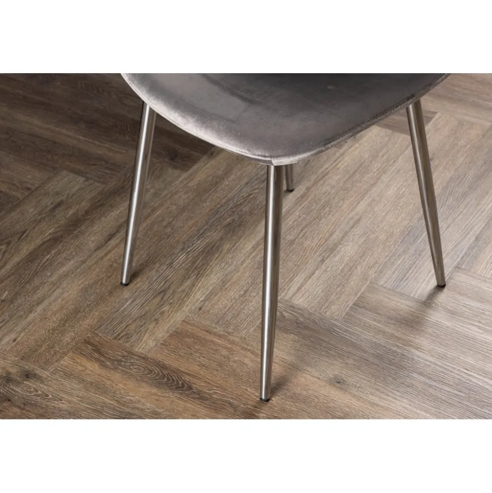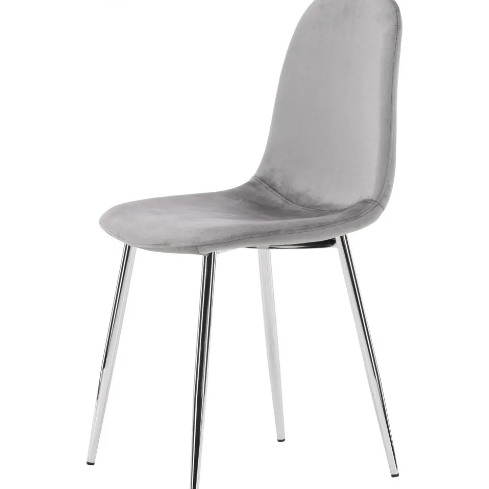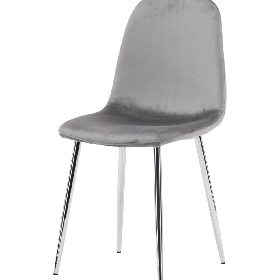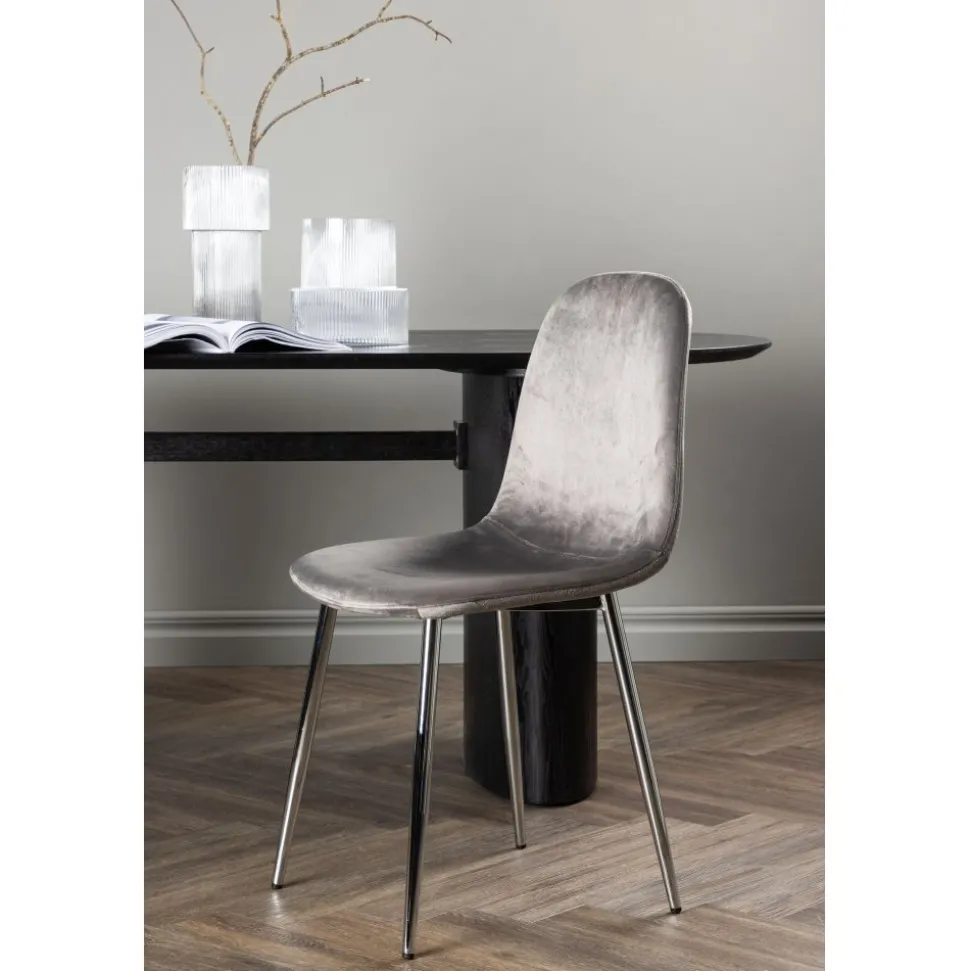 Modern drömstol i tidlös ljusgrå kulör! Den här matstolen har en helklädd design med lätt rundad rygg och sits i sammetstyg och ben i ljusgrå metall. Möblera hemmets hjärta inbjudande och trivsamt och njut av härliga måltider tillsammans!