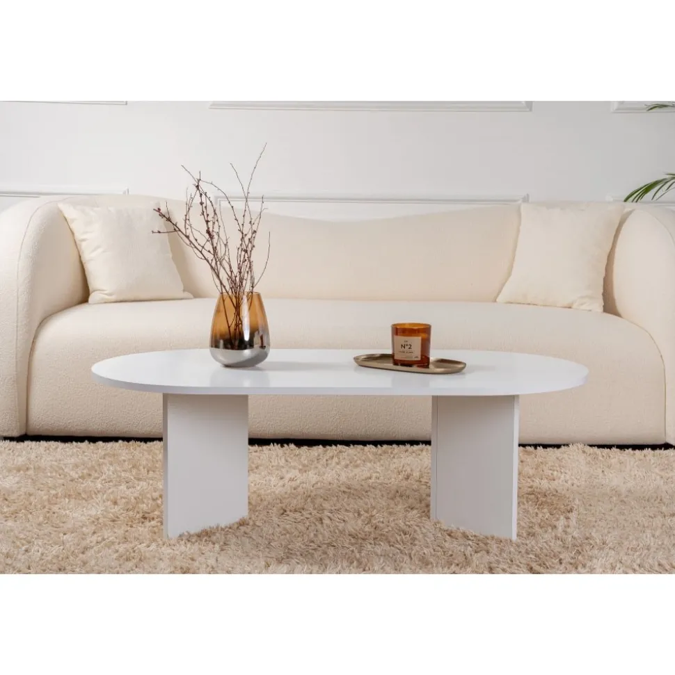 Soffbord av melaminbelagd spånskiva.