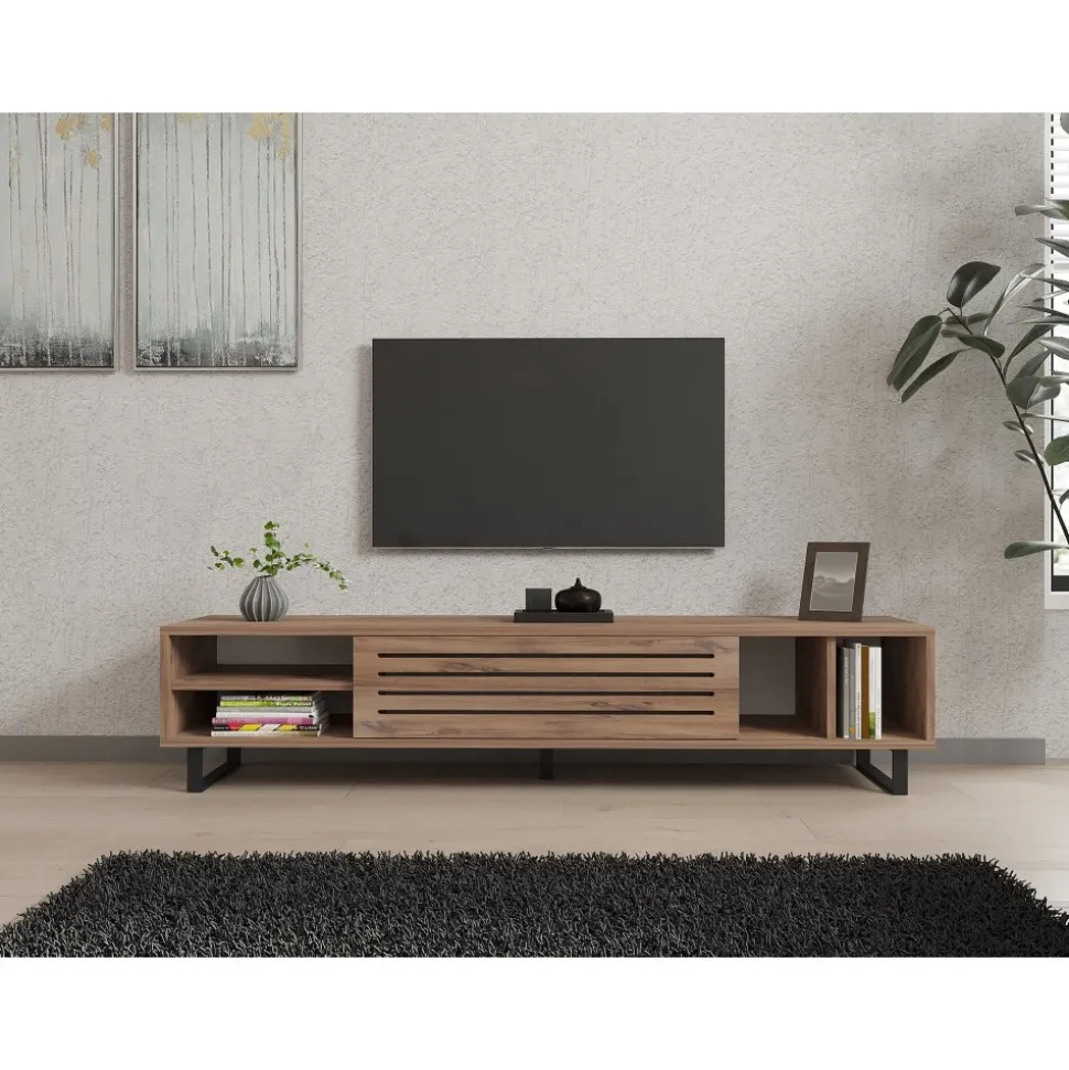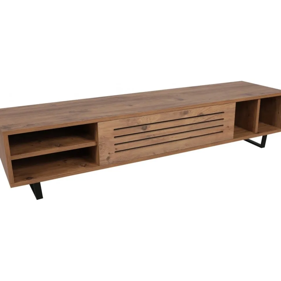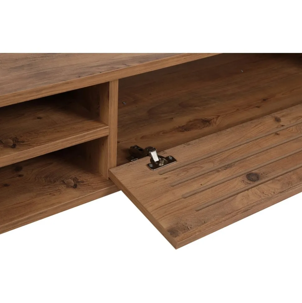 ?Mediabänk av melaminbelagd spånskiva.