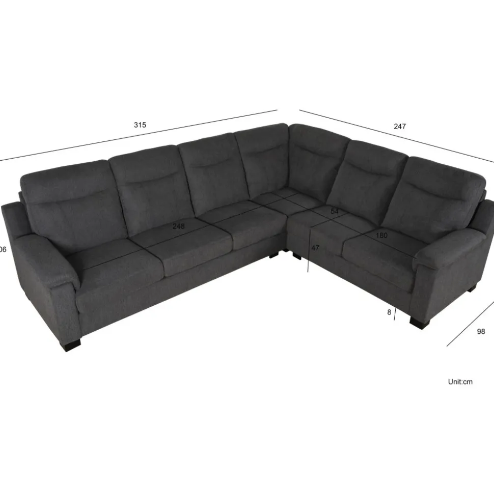 Salem hörnoffa har en klassisk design med hög rygg och skön sittkomfort. Soffan är klädd i ett slitstarkt men mjukt tyg som lyfter komforten i soffan.
