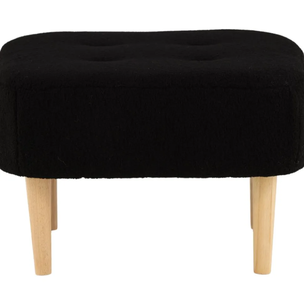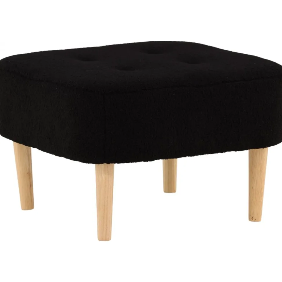 En trendig inredningsdröm som lyfter den stilsäkra och inbjudande känslan till rummet! Den här sittpuffen från serien Salina imponerar med sin lyxiga look och blir till en snygg inredningsdetalj. Tillverkad i sotig svart kulör av gosigt fleecetyg, trä och metall med djuphäftade knappar i tyget som blir till en läcker detalj. Puffen har en låg design med träfärgade ben som bidrar till en luftigare atmosfär och möjliggör enkel dammsugning.