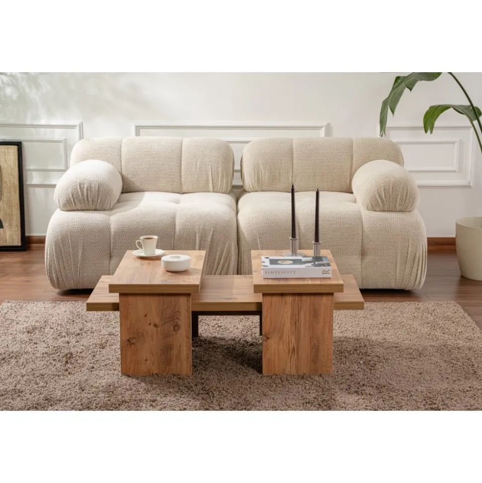 Soffbord av melaminbelagd spånskiva.