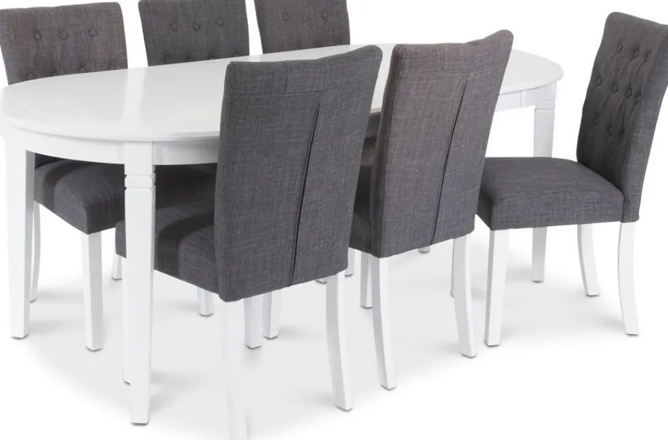 Medföljer gör också 6 st Crocket stolar med skön komfort och ett stilrent grått tyg.