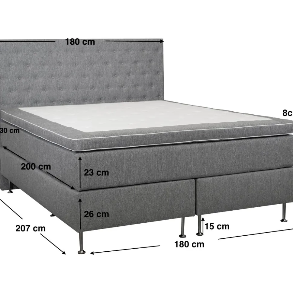 Kontinentalsängen Dream levereras med en komfortabel bäddmadrass som är 8 cm hög och av hög kvalitet. Bäddmadrassen är pikerad med keder runt om för att få rätt känsla och utseende.