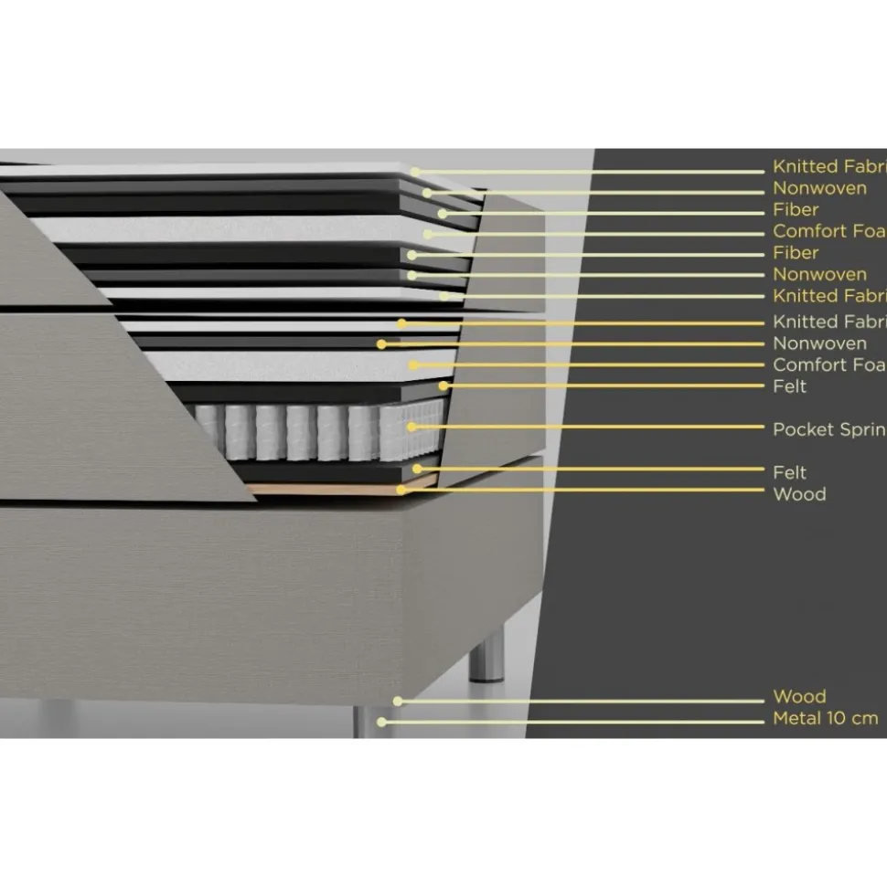 Kontinentalsängens resårmadrass kommer med ett dubbelfjädrande resårsystem i pocketmodell av hög kvalitet.