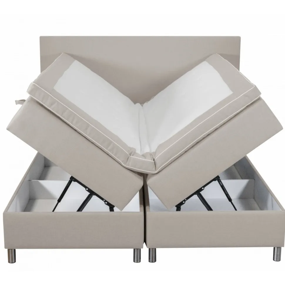 Inkluderat i Accent säng med förvaring: 2 st sängar med sängstomme, resårmadrasser och bäddmadrasser och 8 stycken aluminiumben.