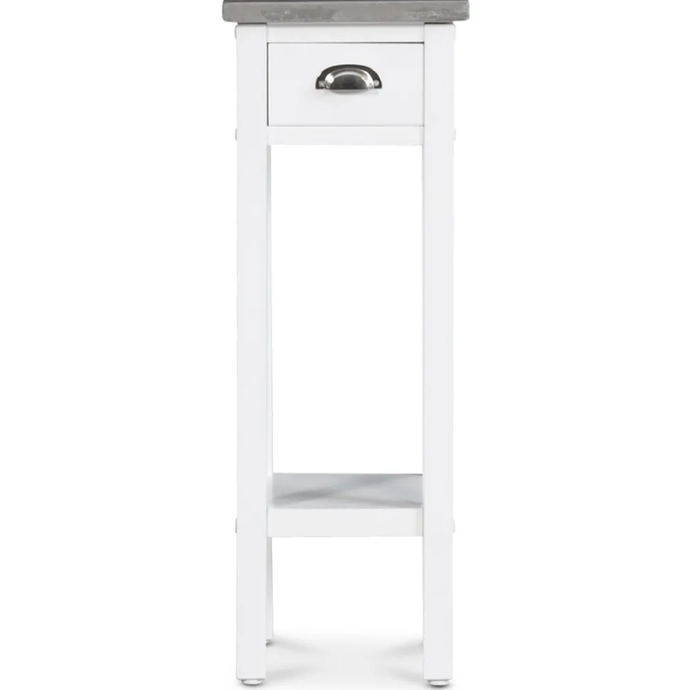 Sängbord i vitlackat trä med 1 st låda, toppskiva i cement.