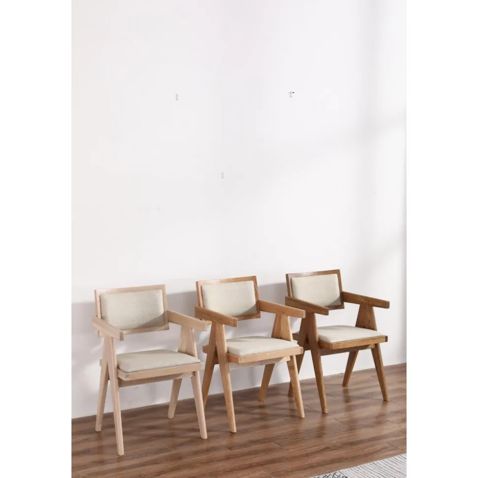 Robust som finns att välja i flera olika färger. Ramen är av ek i utförande valnöt, sits- och rygg klädd med ett grått linnetyg.