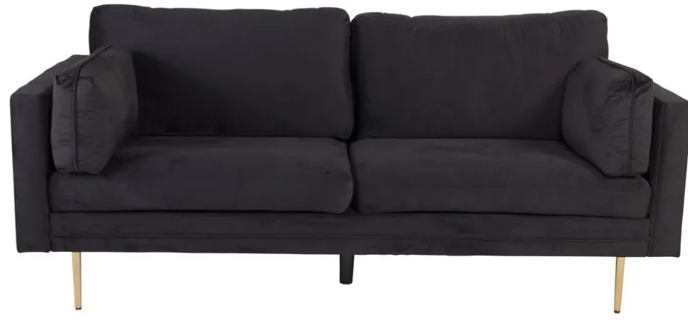 Soffa klädd med ett svart sammetstyg i 100% polyester, stomme i massivt trä.