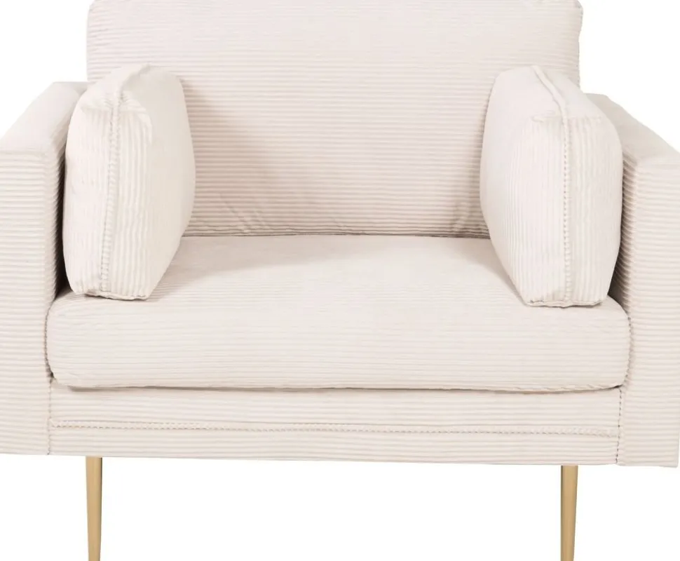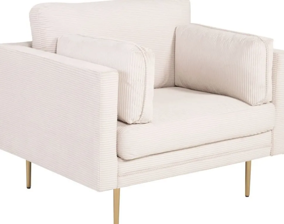 Fåtölj klädd med ett ljusgrått manchestertygg i 100% polyester, stomme i massivt trä.