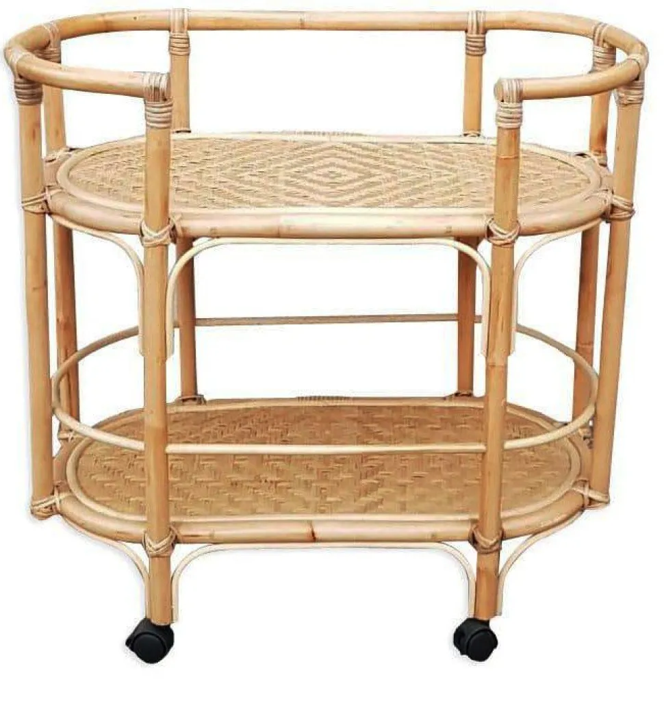 Serveringsvagn i naturlig rotting. Utrustad med hjul för att enkelt kunna förflyttas. Serveringsvagnen är ett perfekt komplement när man har gäster. Fyll den med tillbehör och förflytta den lätt tackvare hjulen. Serveringsvagnen blir samtidigt en fin accessoar i hemmet.
