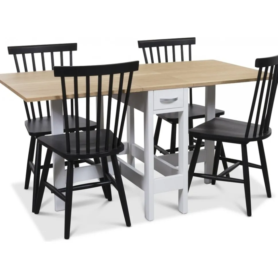 Matgrupp från Skånska Möbelhuset, Klassiskt slagbord Signum med ekfanérad toppskiva och vitlackade ben samt fyra stycken svartlackade Karl pinnstolar som ger ett klassiskt och stilrent intryck!