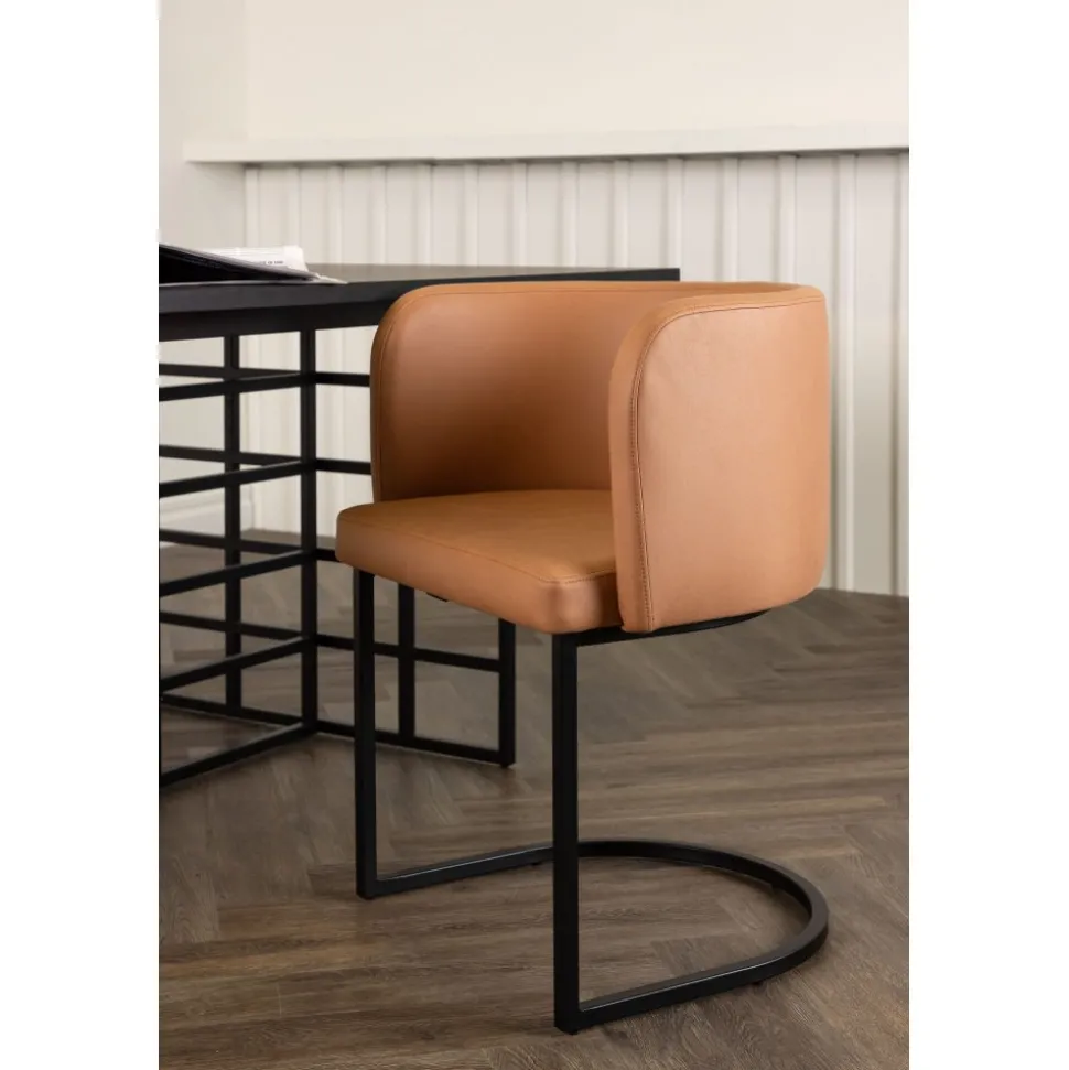 Matstol som är lika stilren som bekväm och skapar ett lyxigt blickfång kring ditt matbord. Stolen har en helklädd sits med ett rundat ryggstöd i brunt TC-tyg och dekorativ, minimalistisk benstomme i svart stål. Den trendsäkra designen imponerar och är helt i linje med trenderna. Sitt bekvämt och njut av måltiderna i dessa eleganta matstolarna.
