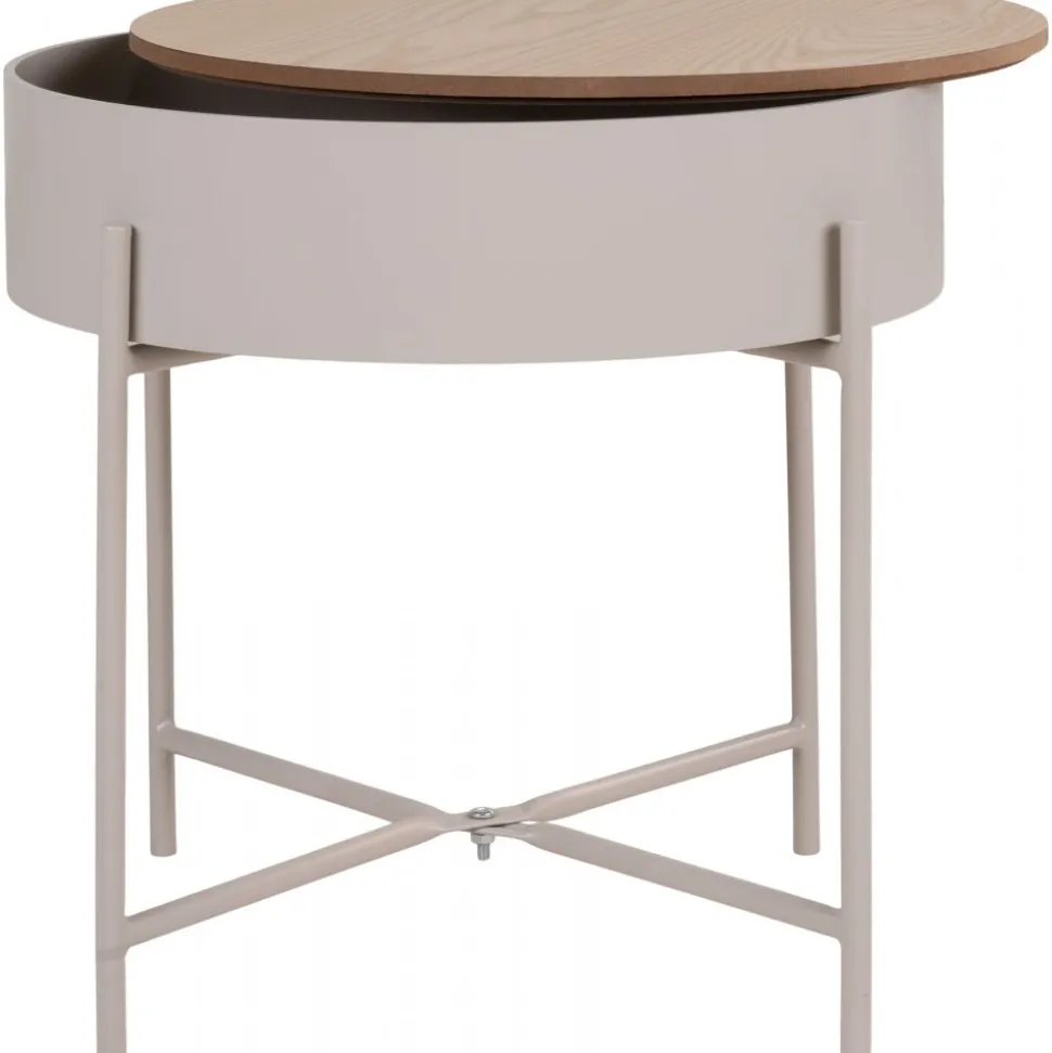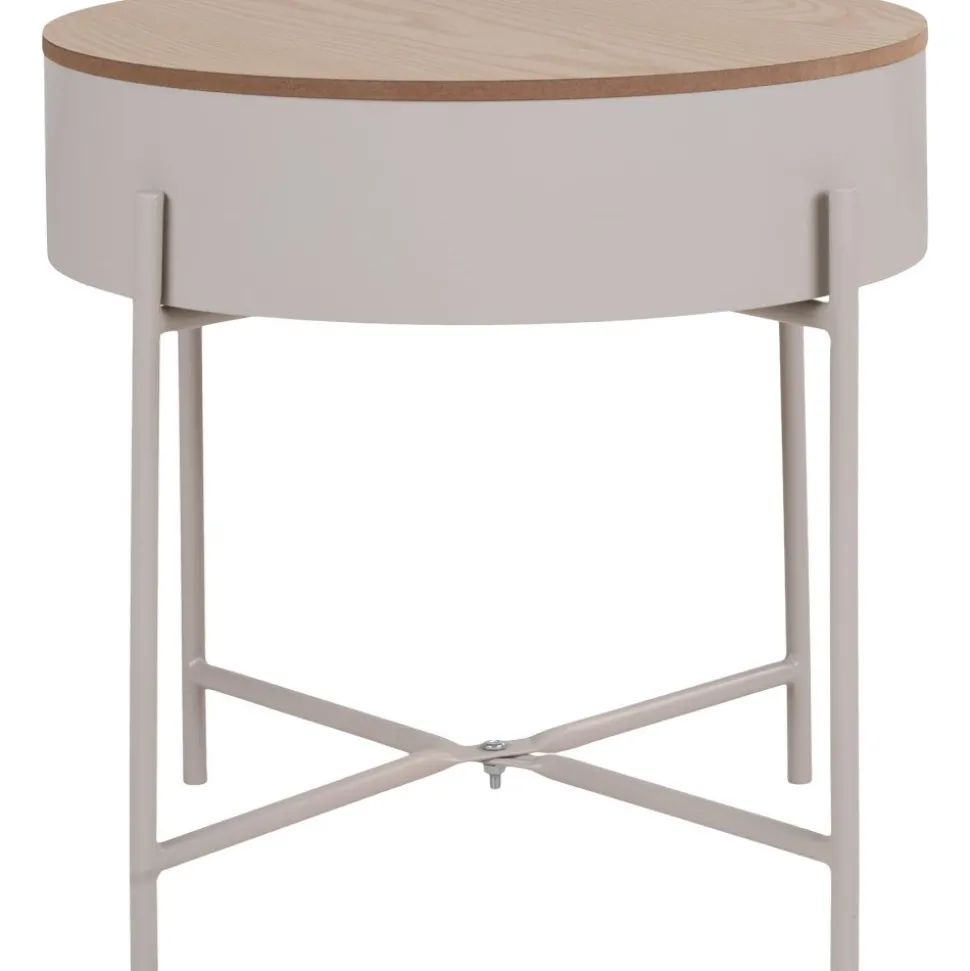 Sidobord av MDF och melamin med ben av stål. Levereras omonterad.