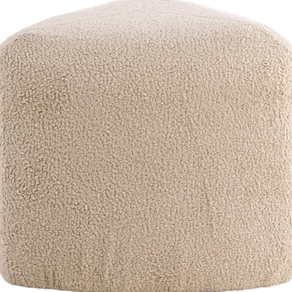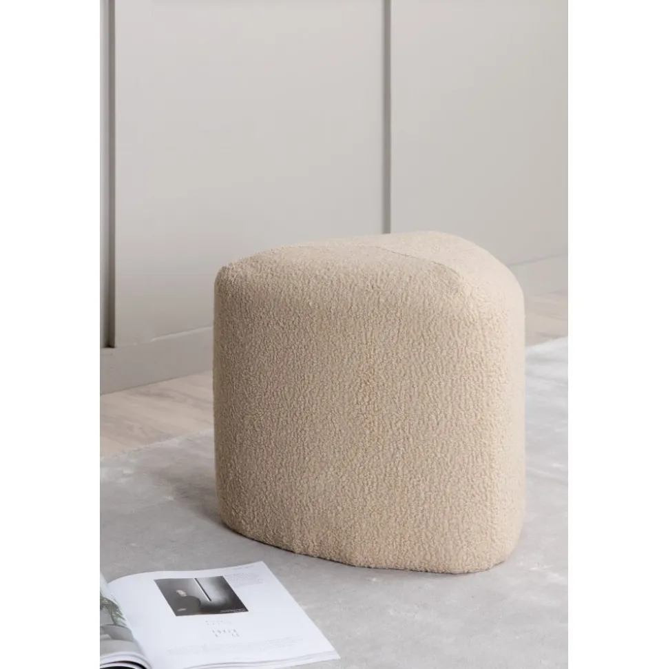 Sittpuff av trä, klädd med polyestertyg.