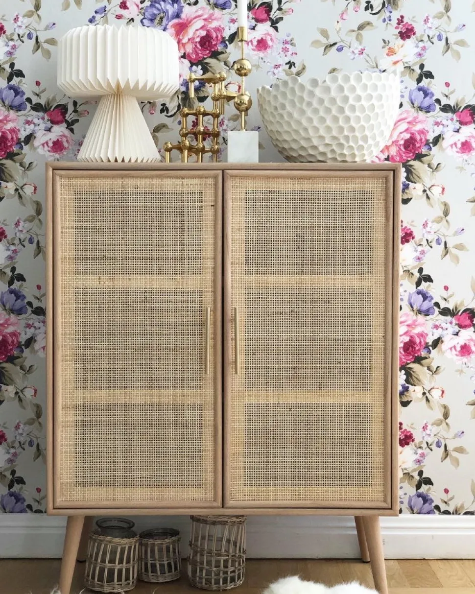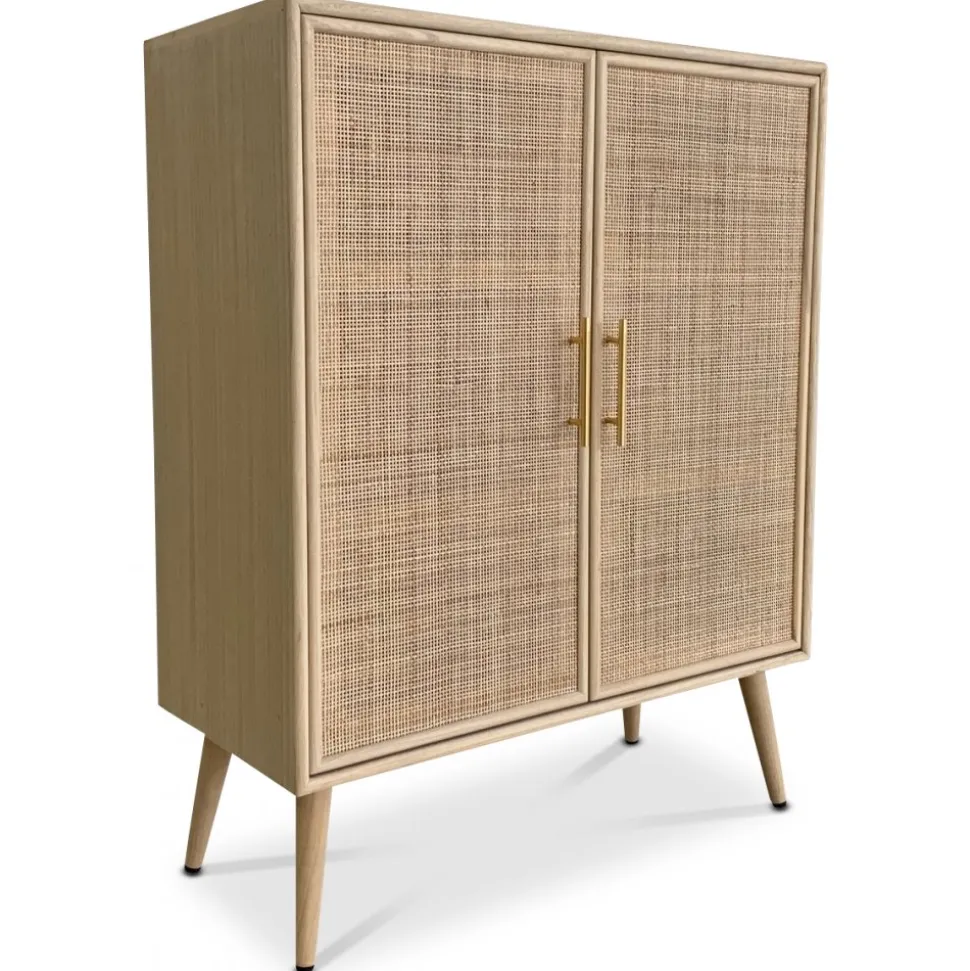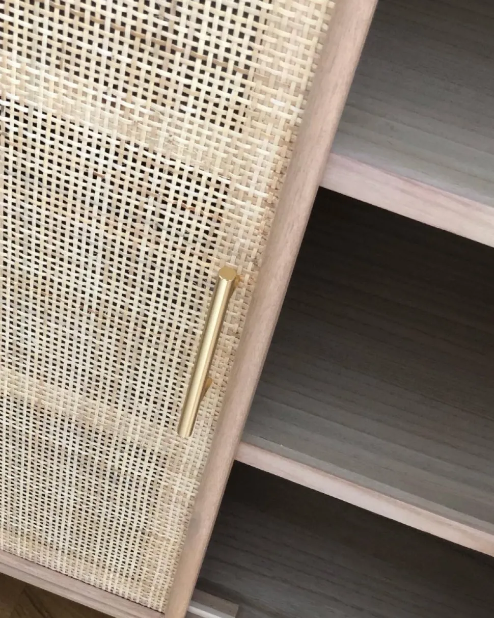Skåpet React är en handbyggd förvaringsmöbel i behandlat trä och naturrotting. Med sin tidlösa design och naturliga material passar det lika bra i moderna som klassiska hem. De två hyllplanen ger praktisk förvaring för porslin, böcker eller personliga detaljer, och de eleganta mässingshandtagen i metall adderar en stilren detalj. Som en del av React-serien matchar skåpet enkelt med andra möbler i samma serie.
