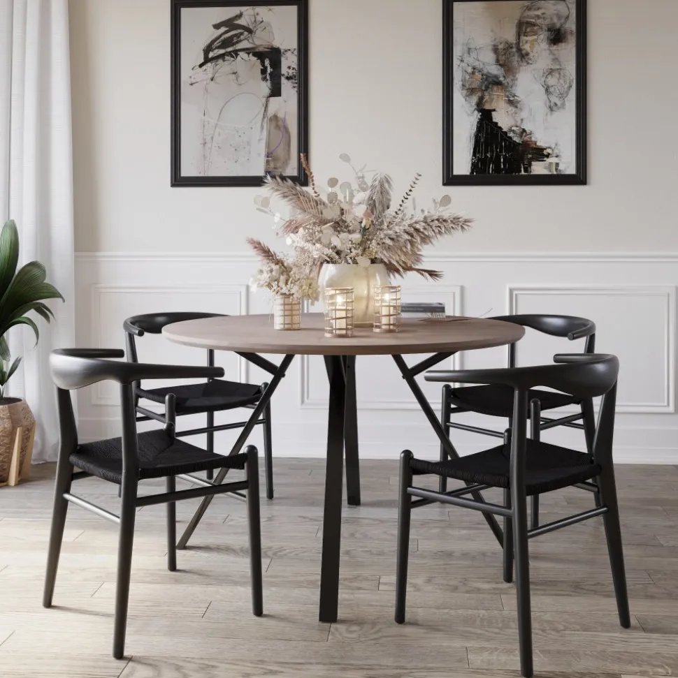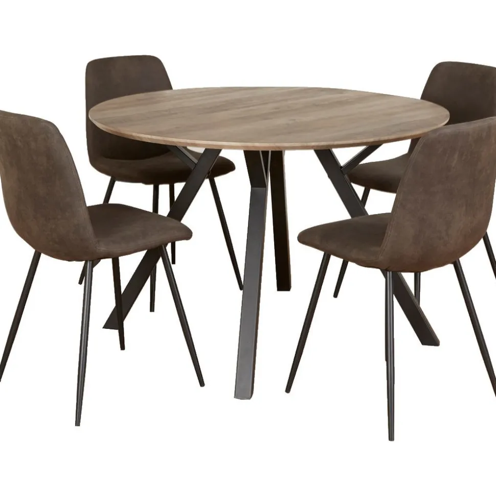 Smokey är ett prisvärt matbord med plats för fyra personer. Svarta metallben som ger bordet en stabil grund och en MDF-skiva i whitewash.