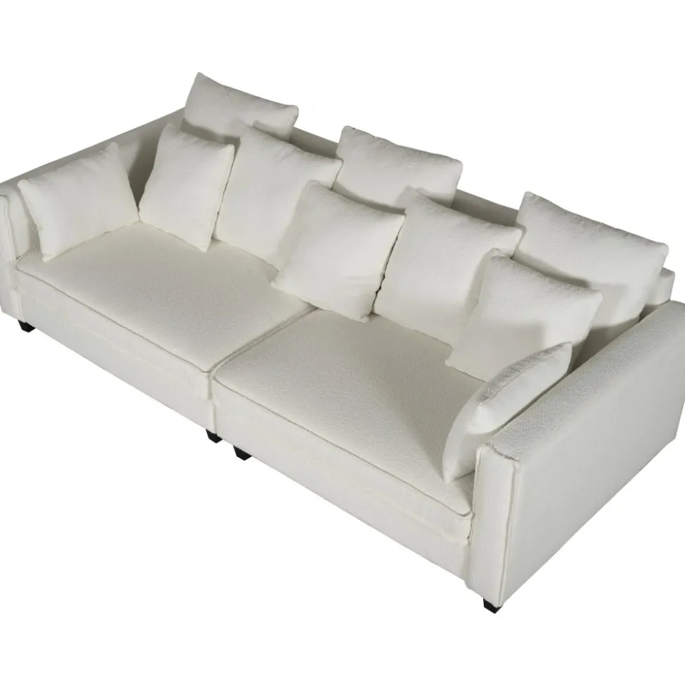 Brandy är en djup som man gärna kryper upp i och njuter av. Modernt ljust bouclè tyg för den modemedvetne. Kuvertkuddar i ryggen för att få till rätt känsla.