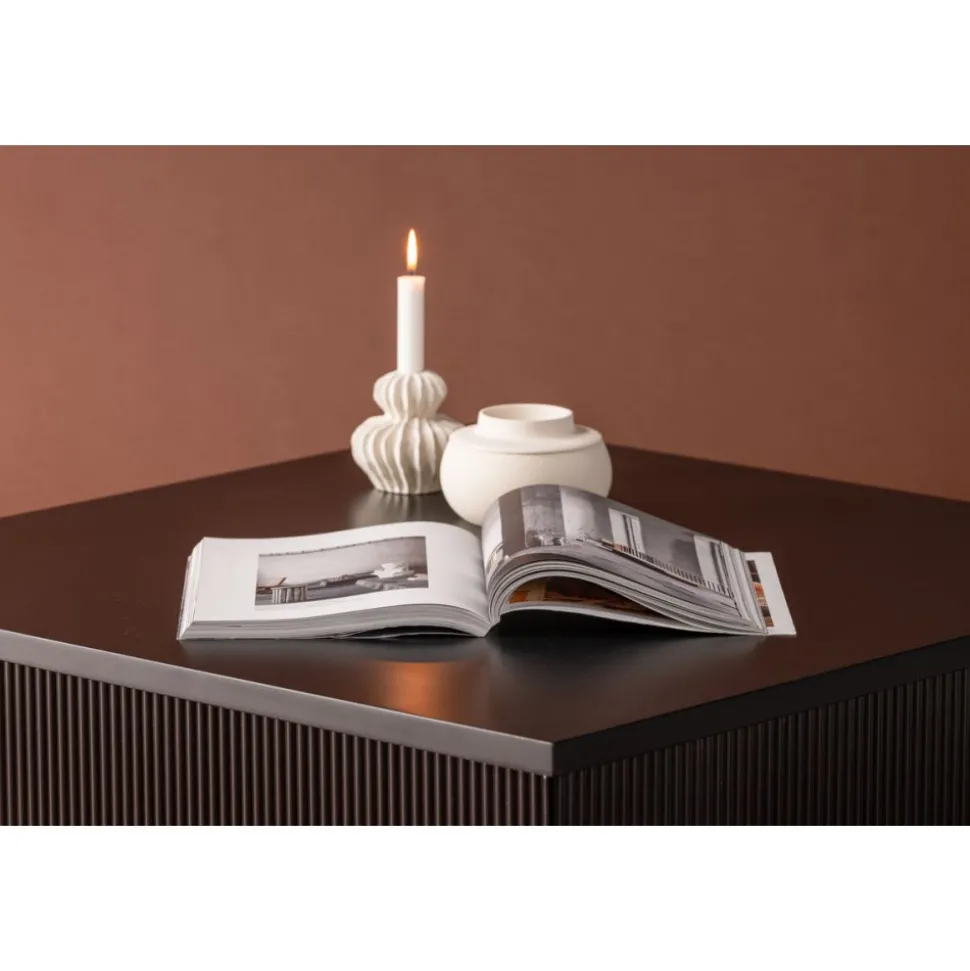 Stilrent och robust som passar utmärkt framför den större soffan. Bordet är tillverkat i det slitstarka materialet MDF med en ribbad design längs den kvadratformade toppskivan. Utförandet är genomtänkt och möjliggör plats för vackra dekorationer, ljus och vaser som bidrar till en trivsam heminredning.