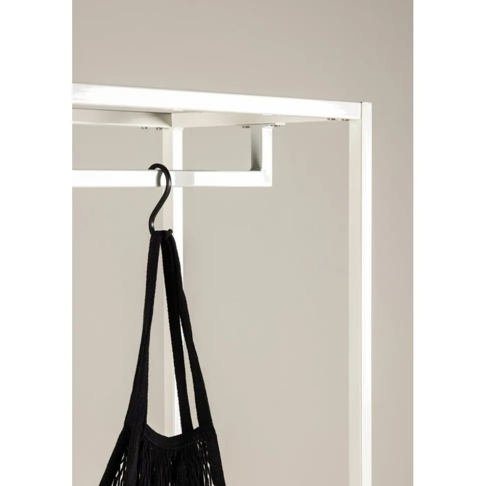 Möta en ny era av stil och ordning med vår klädhängare Staal. Tillverkad i robust stål och klädd i en mjuk beige nyans, är Staal inte bara en funktionell lösning utan även en modern inredningsdetalj som lyfter atmosfären i ditt hem. Staals eleganta och moderna design ger den en tidlös estetik som smälter in i olika rum. Den mjuka beige färgen skapar en lugn och harmonisk atmosfär, vilket gör Staal till ett perfekt tillskott i såväl sovrummet som i hallen. Placera den där du behöver en dos av både stil och organisation. Det som gör Staal unik är dess smarta hyllplan. Två mindre hyllplan ger dig möjlighet att ordna smycken, vikta kläder eller andra små accessoarer, medan det större hyllplanet ger plats för större föremål eller kanske ett dekorativt inslag. Inte nog med det – Staal erbjuder även plats för galgar, vilket gör den till en komplett lösning för dina klädförvaringsbehov. Placera och organisera dina kläder och accessoarer med lätthet med hjälp av Staal. Den är inte bara en praktisk klädhängare utan även en stilfull möbel som sätter tonen för rummet. Staal ger dig möjligheten att kombinera funktion och estetik på ett modernt och imponerande sätt. Välj Staal – din pålitliga följeslagare för att skapa ordning och modern stil i varje del av ditt hem!