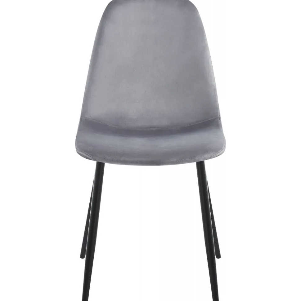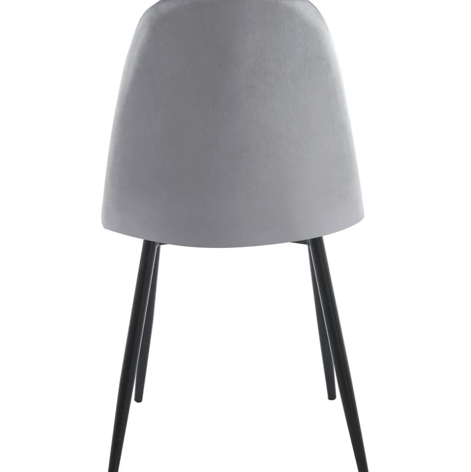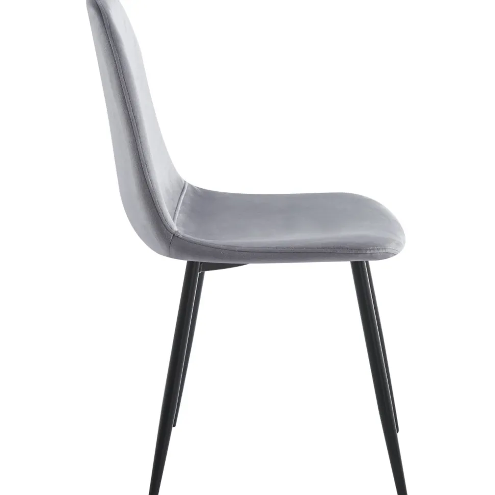 Med klädsel i ljusgrått sammetstyg ger den en mjuk och inbjudande känsla. Stolens design är både stilren och funktionell. De smala svarta matta stålbenen ger en modern kontrast till den mjuka sammetsklädseln och skapar en lätthet i hela stolen. Dessa ben ger inte bara en stabil grund utan förstärker också den eleganta silhuetten och gör att stolen känns luftig och lättplacerad i rummet.