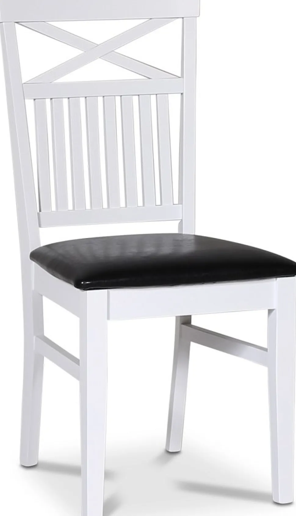 Våra matrums serier Fårö, Skagen och Dalarö är utformade i klassisk design där stilren design möter kvalitet. Denna med stomme i vitlackat massivt trä med sits i svart tålig PU. Kryss och raka ribbor i ryggen som en klassisk detalj.