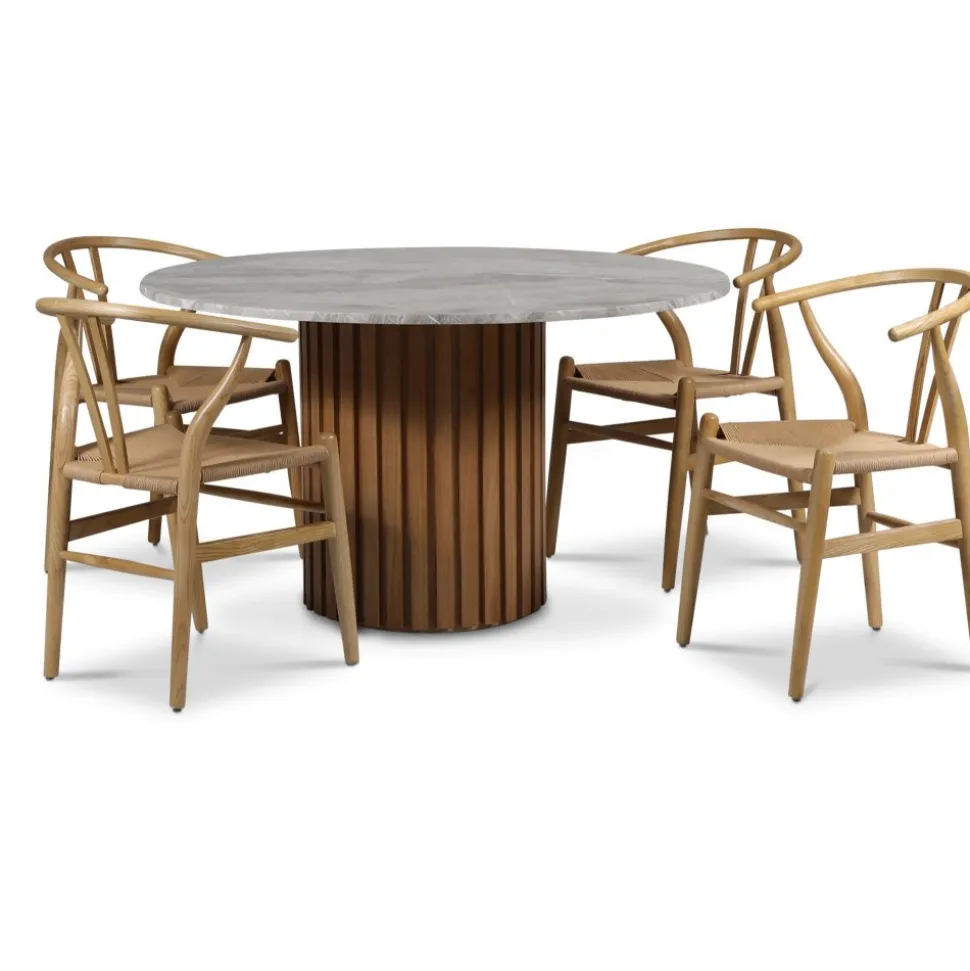 Klassiska matstolar i karm-modell med stomme i almträ och flätad repsits av papperssnöre. Levereras monterad.