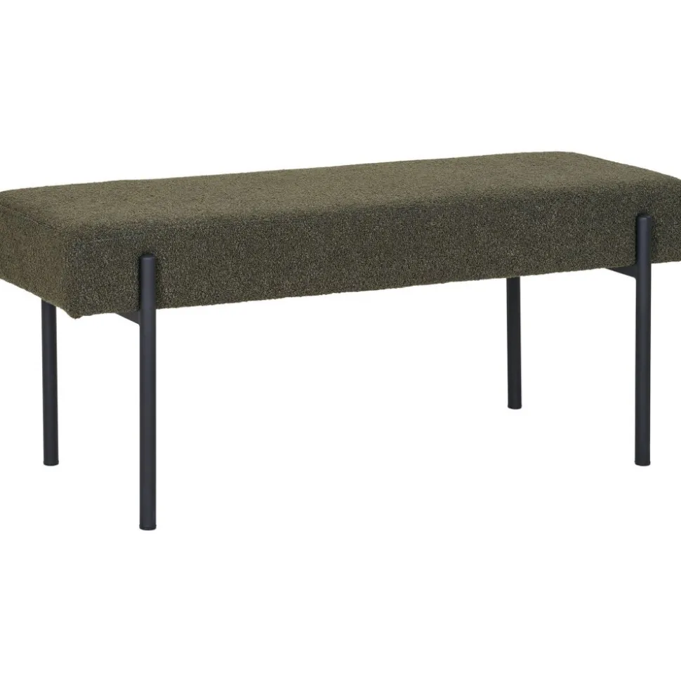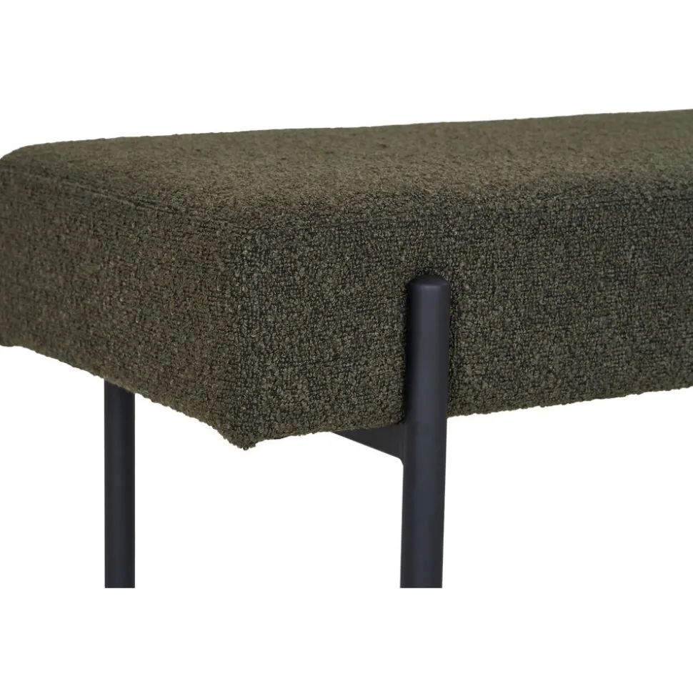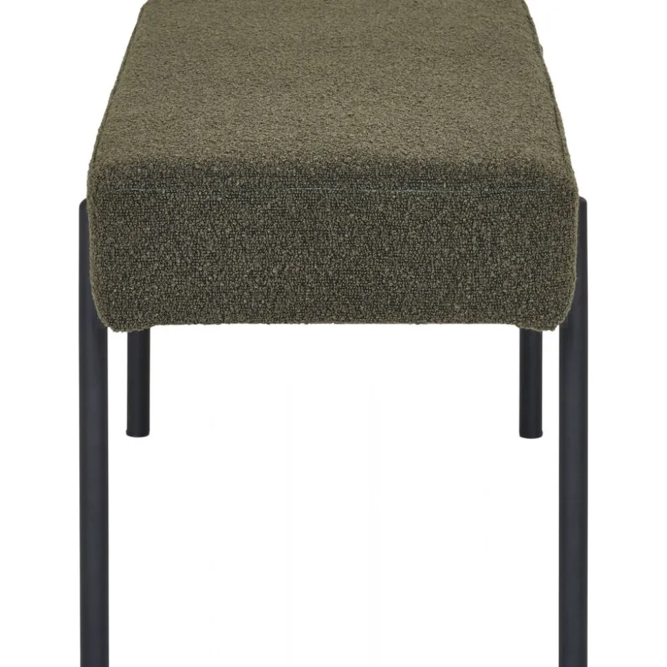 Sittbänk med klädsel av bouclétyg och ben av stål. Levereras omonterad.