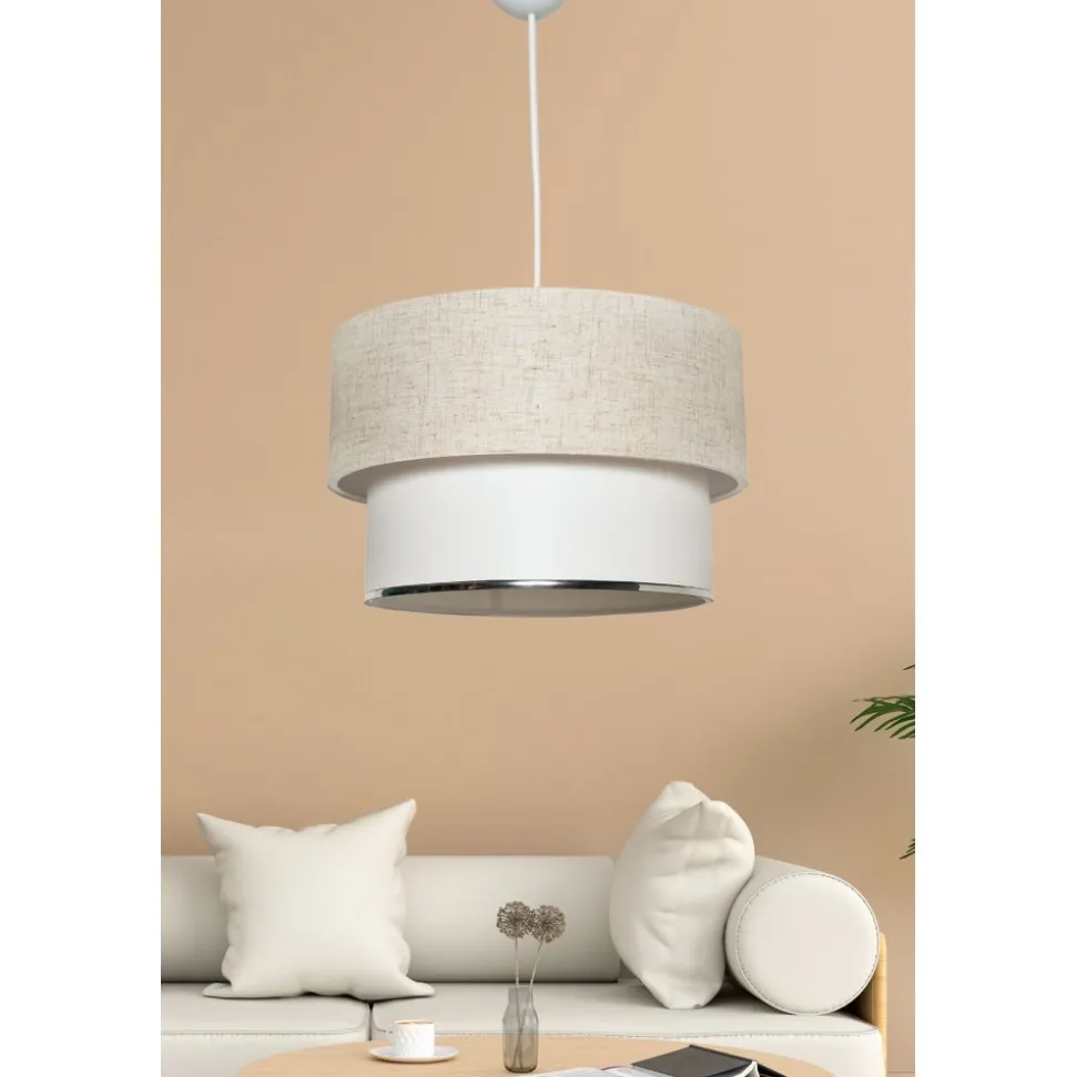 Aviz i krämvit är en stilren och elegant belysningslösning som passar perfekt i olika rum, från vardagsrum och kök till sovrum och hall. Lampan kombinerar metallic detaljer med ett mjukt tyg, vilket ger den en modern och ändå klassisk känsla.