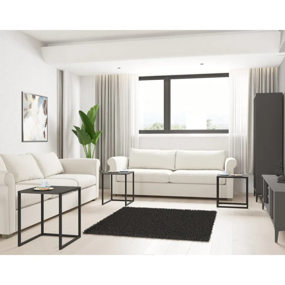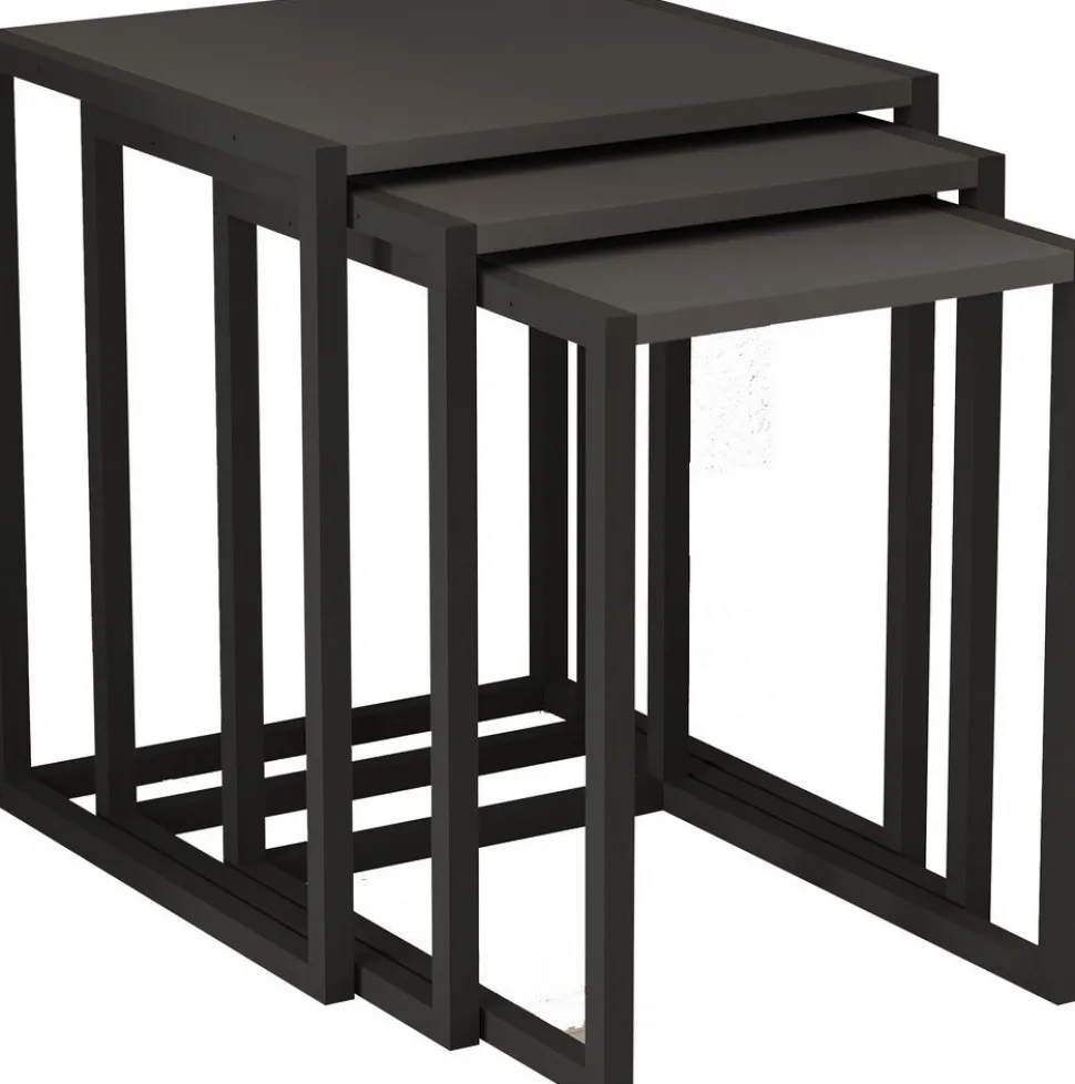 Satsbord av melaminbelagd spånskiva med ben av järn.