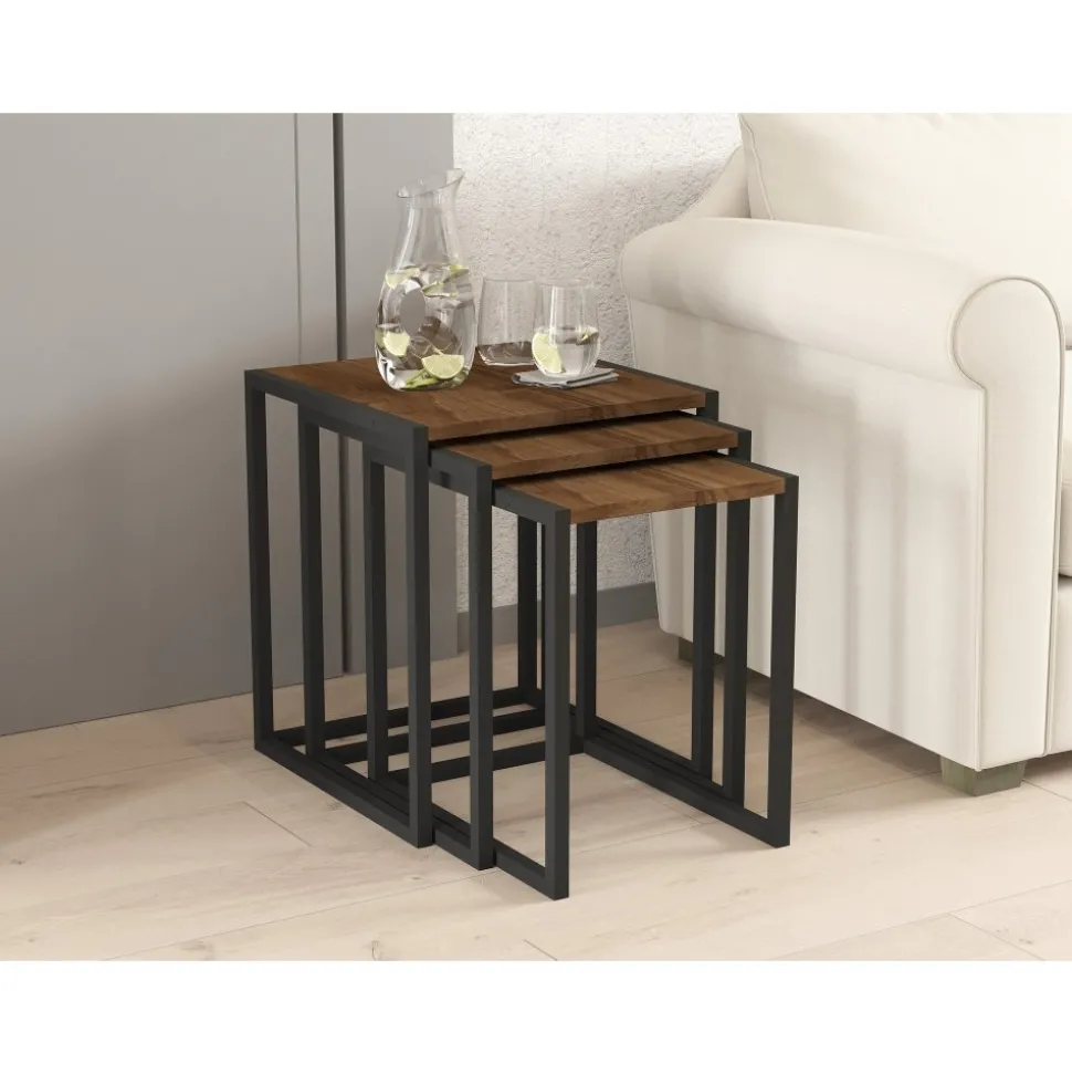 Satsbord av melaminbelagd spånskiva med ben av järn.